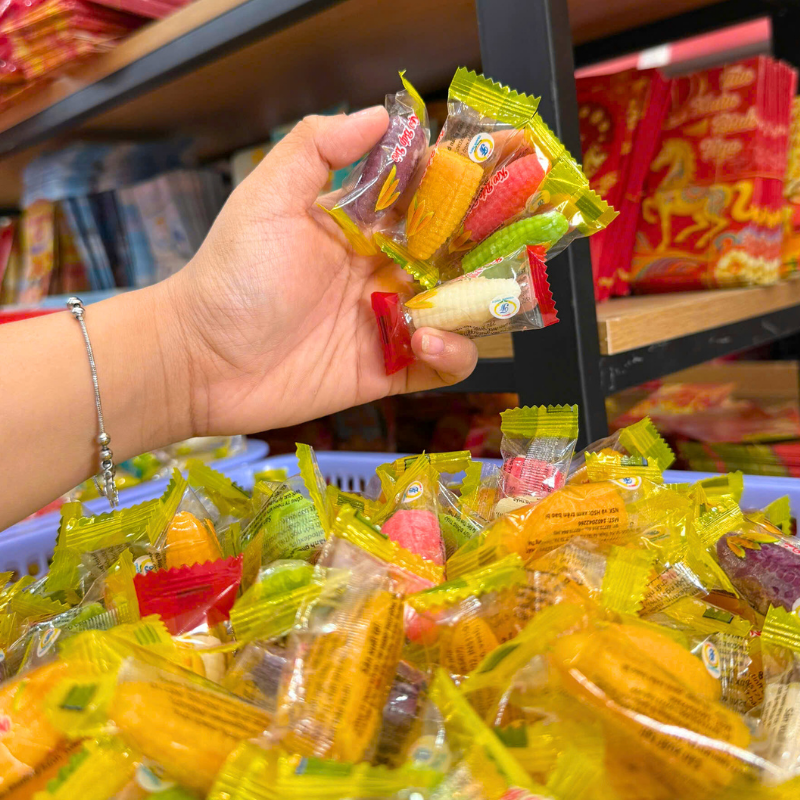Nguồn hàng sỉ kẹo Dẻo Hàng Xá Bắp Nhiều Màu 200g/Hộp