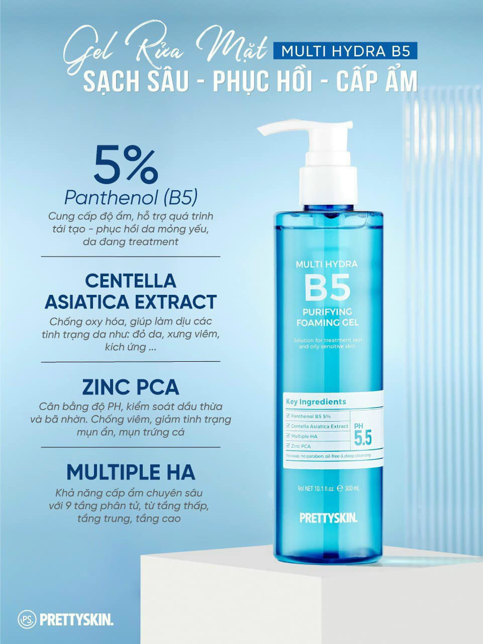 Nguồn hàng sỉ sữa Rửa Mặt Prettyskin Multi Hydra B5 Cấp Ẩm Sạch Sâu 300ml