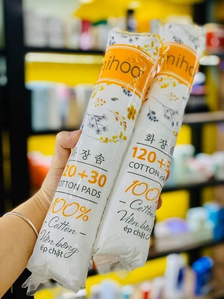 - Bông Tẩy Trang Mihoo 150 miếng tròn giúp tẩy trang lớp trang điểm, kem chống nắng.