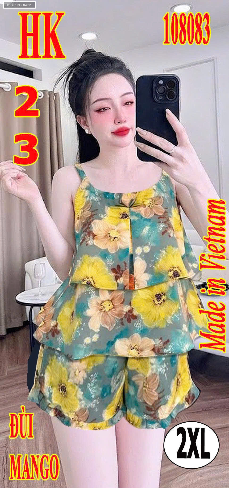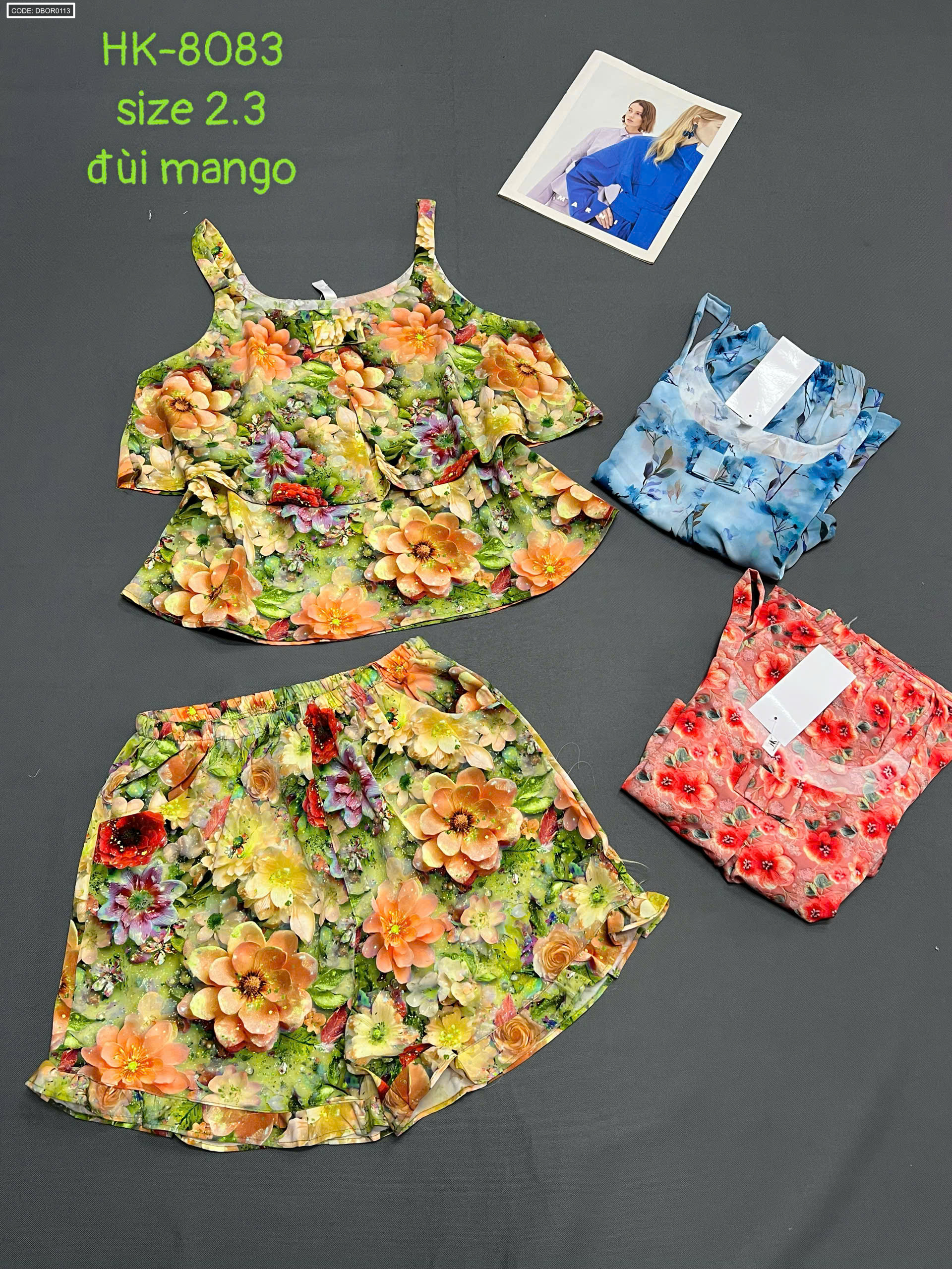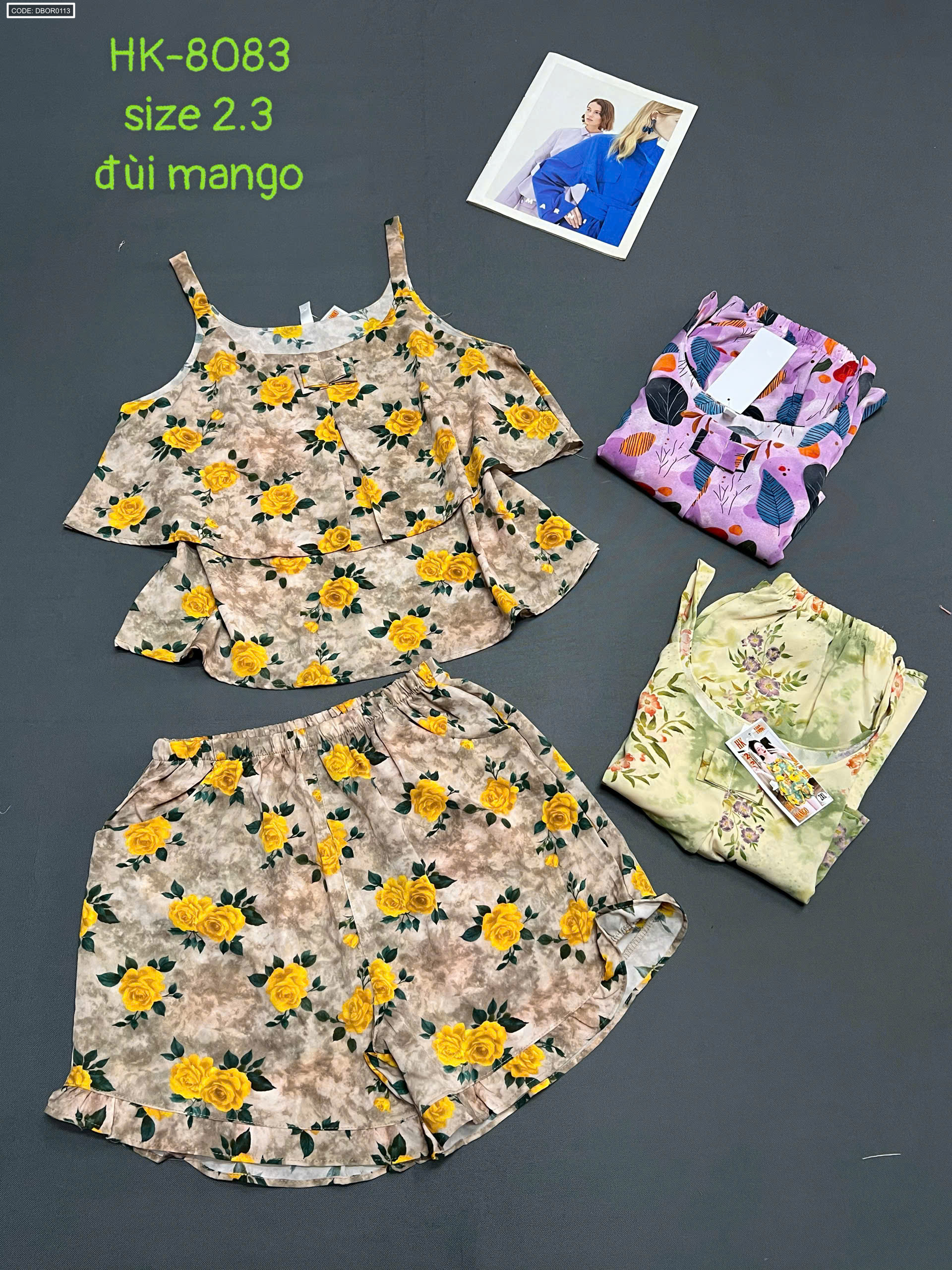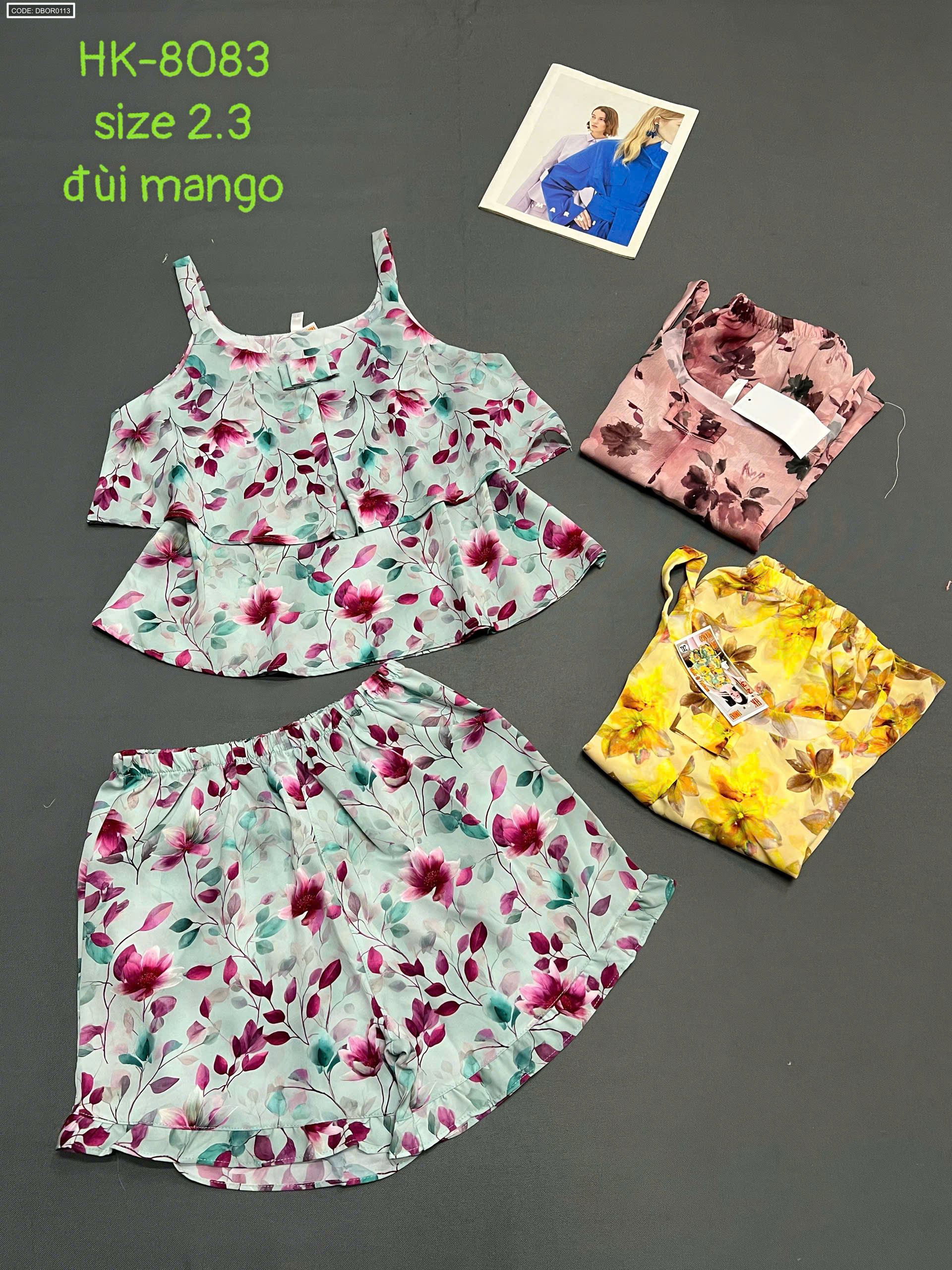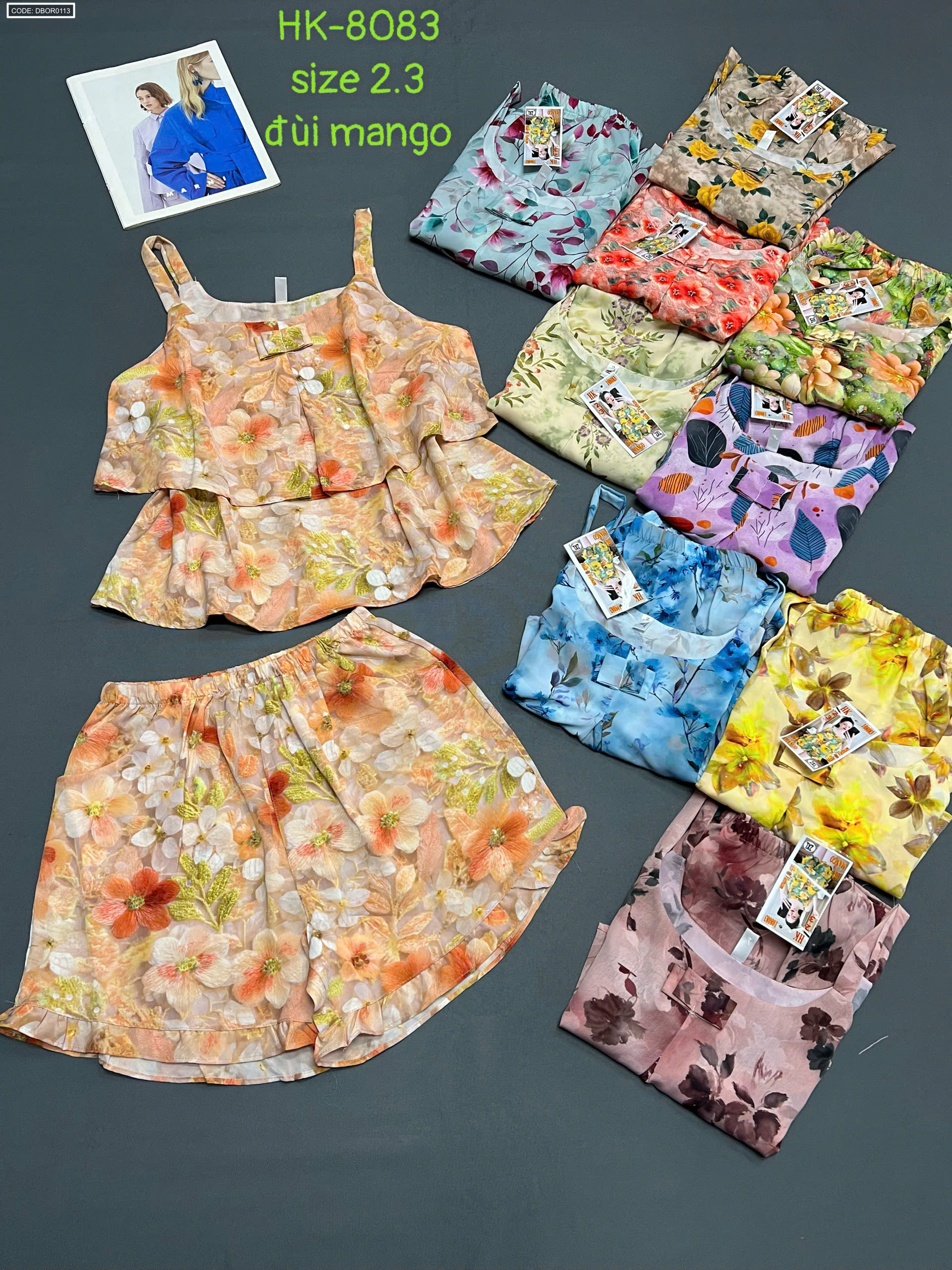 Nơi lấy sỉ đồ bộ nữ 2 dây vải mango quần đùi hoa HK-8083