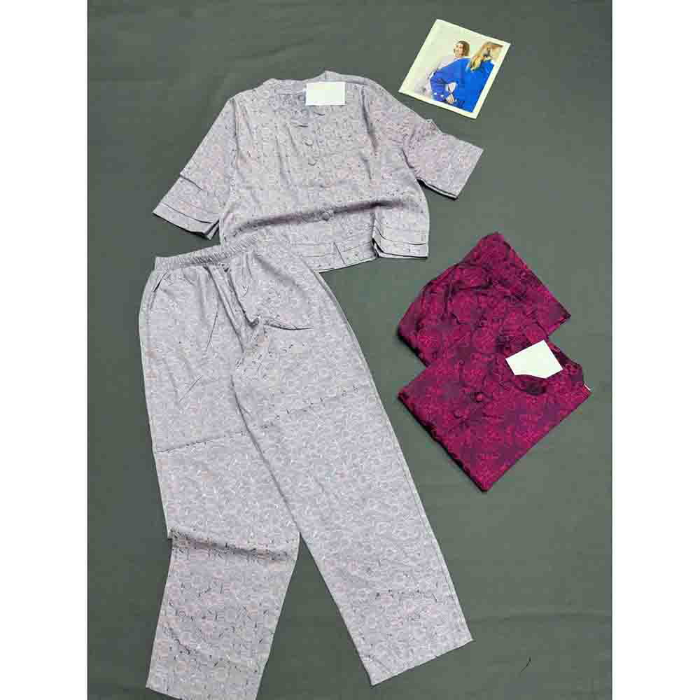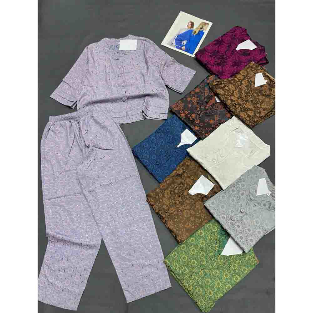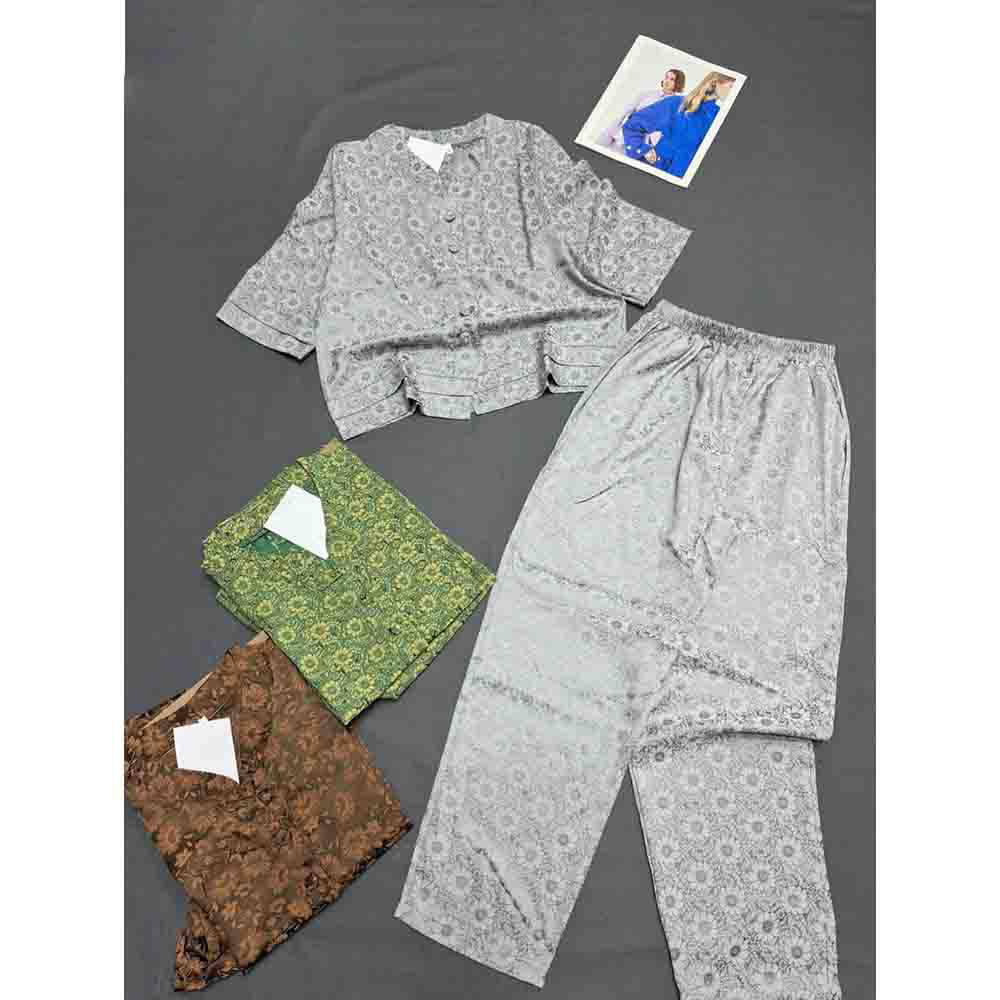 Nơi lấy sỉ đồ Bộ Nữ Trung Niên Áo Tay Lở Quần Dài Họa Tiết Sang Trọng Vải Gấm Mịn Mát Size 45-62kg