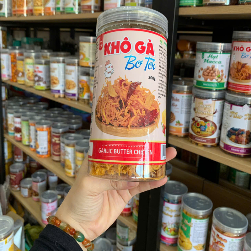 Nơi lấy sỉ khô Gà Bơ Tỏi Thơm Ngon 300g Hộp