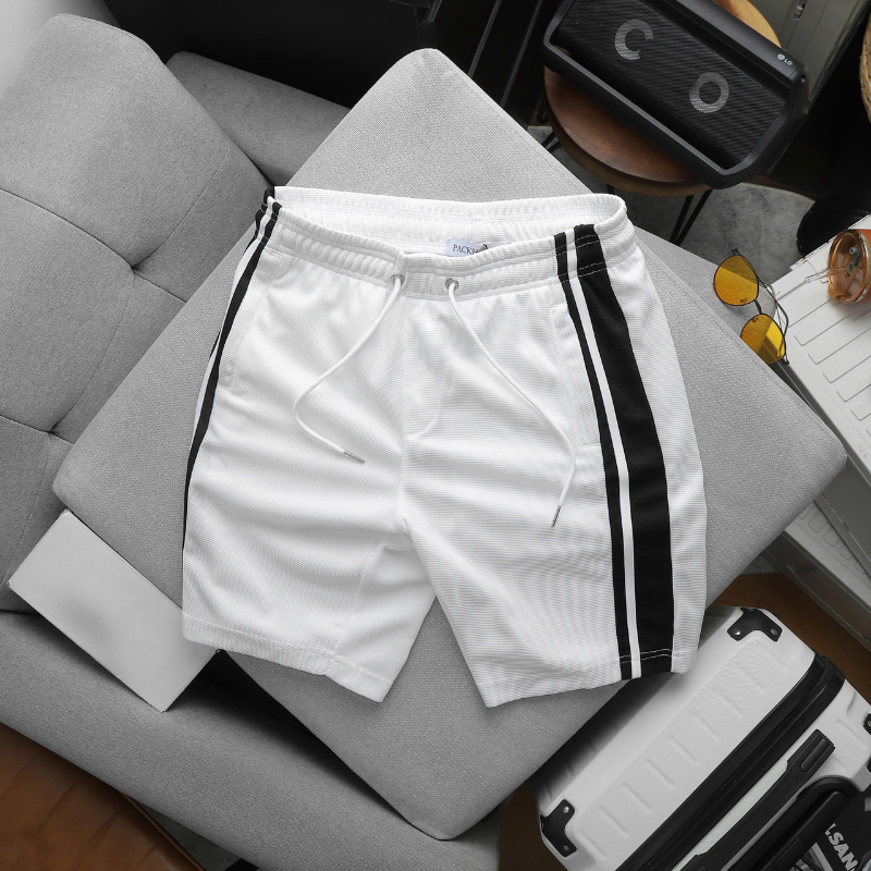 Quần short PACK mang phong cách thể thao hiện đại, phối sọc hai bên nổi bật, form unisex, mặc cực thoải mái – thích hợp đi chơi, đi gym, ở nhà hay dạo phố đều đẹp.