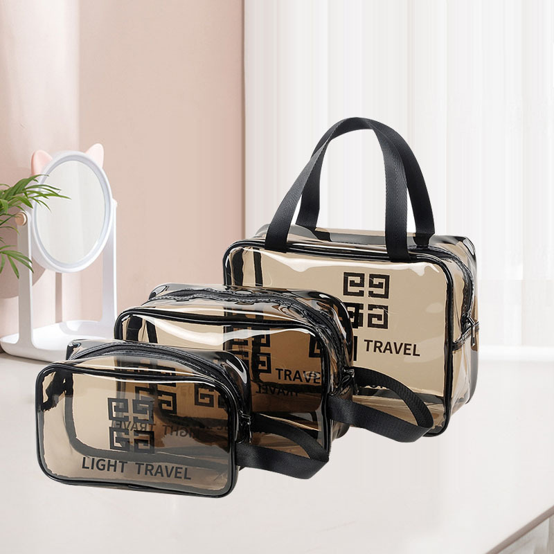 Set 3 Túi Đựng Đồ Dùng Cá Nhân – Túi Đựng Mỹ Phẩm Trang Điểm – Nhựa Trong Suốt Chống Thấm