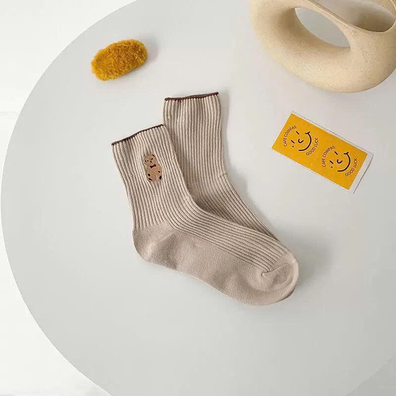 Set 5 Đôi Vớ Cổ Cao Họa Tiết Hình Gấu - Đôi Tất Cổ Cao Phong Cách Hàn Quốc