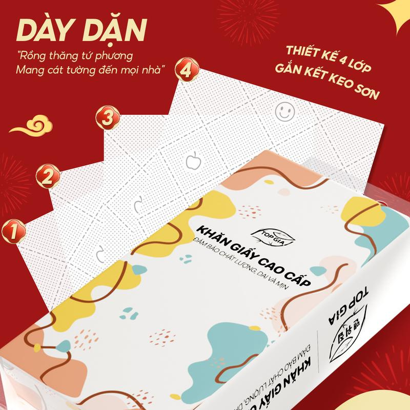 - 4 lớp dày, dai nhưng vẫn mềm mại, giấy chính hãng sẽ được dập nổi 4D