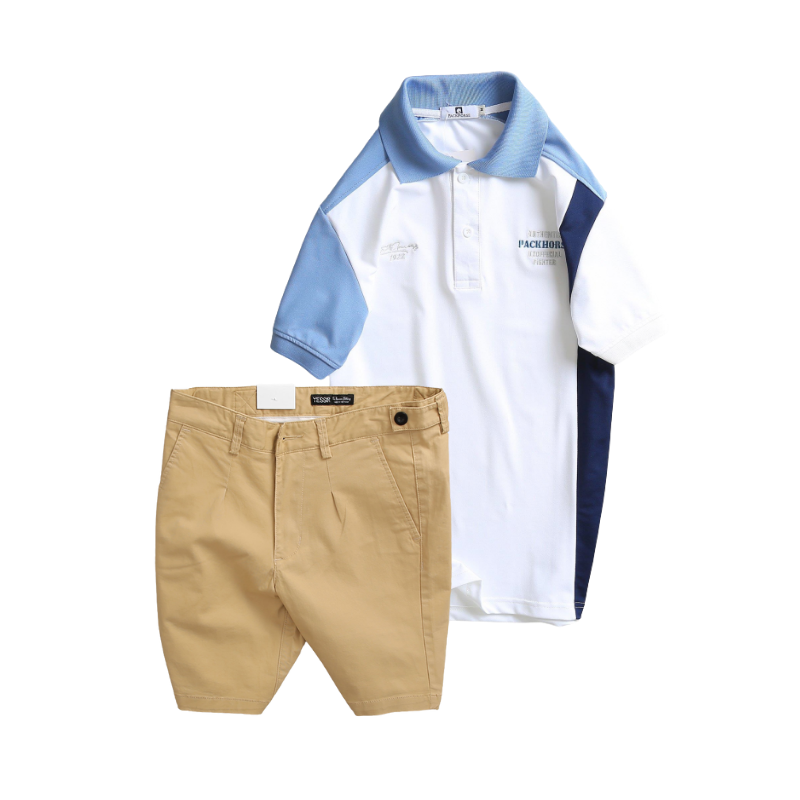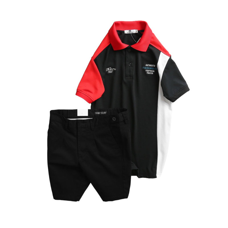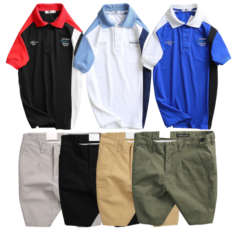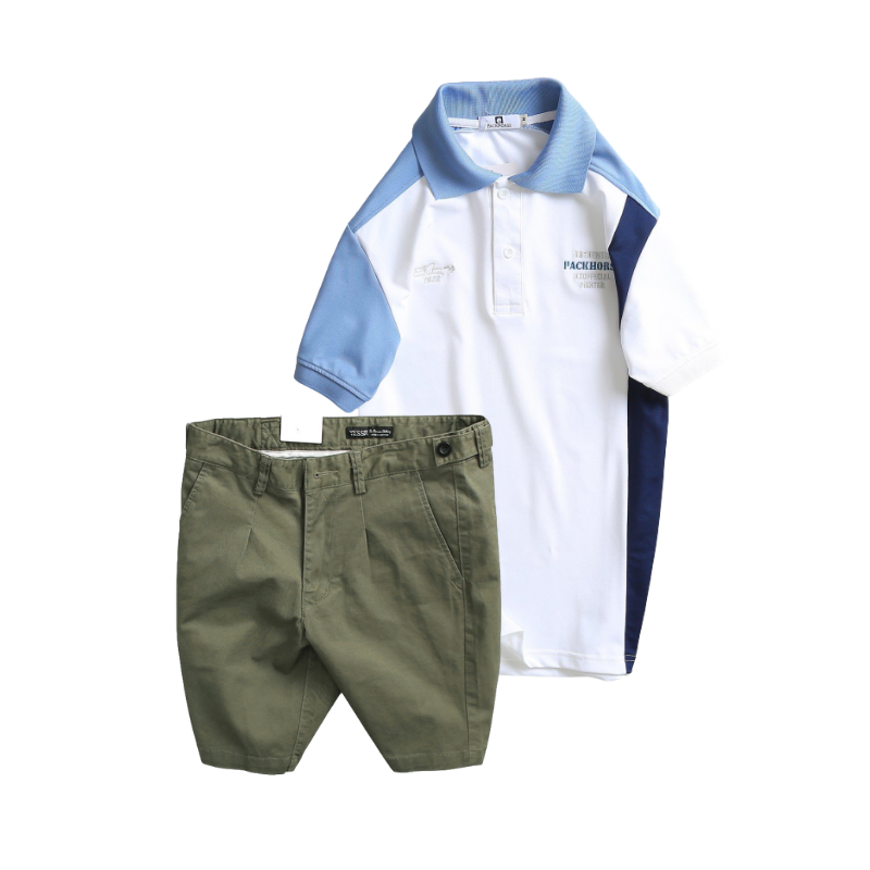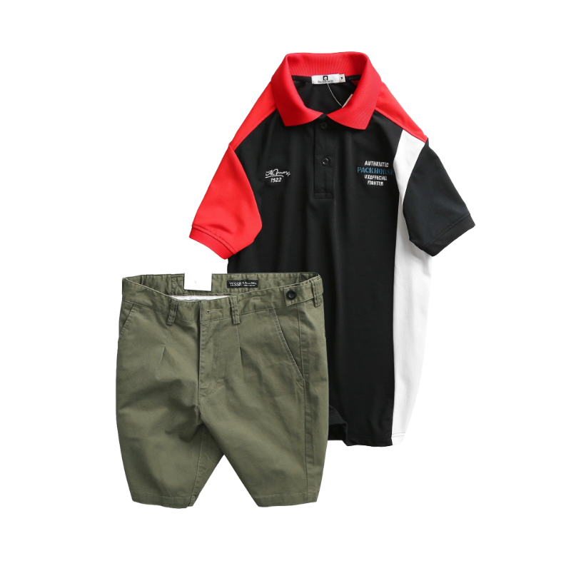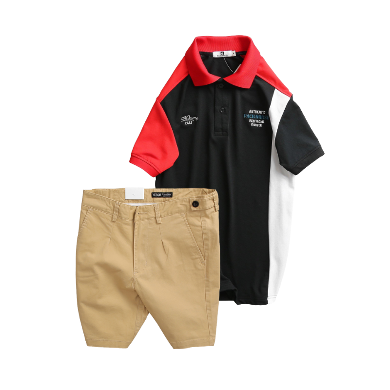 Set Bộ Nam – Áo Thun Nam Polo Cổ Bẻ Cá Sấu Poly Cổ Bẻ Ghép Vải Thêu Chữ Trước Ngực Và Quần Short Kaki Co Giãn Phối Nút Cao Cấp (Có Size 36)