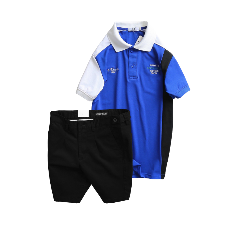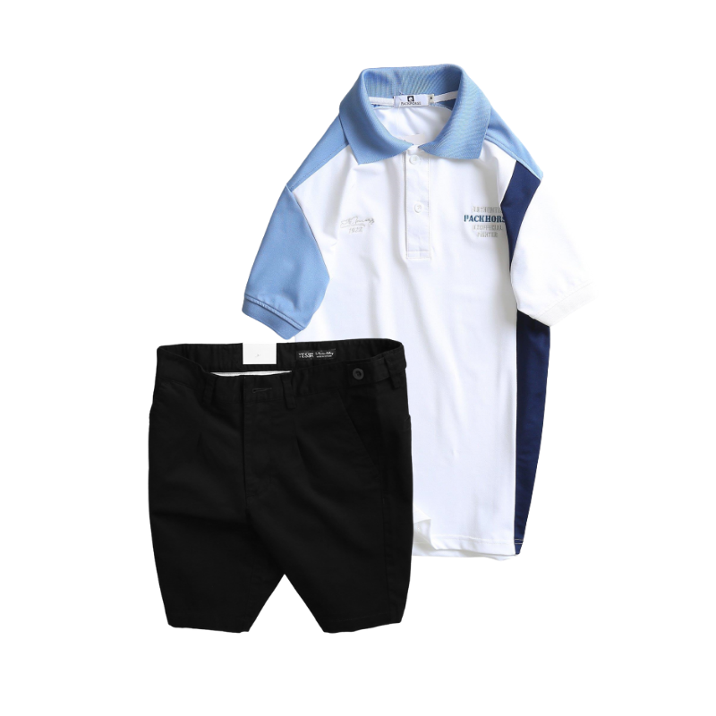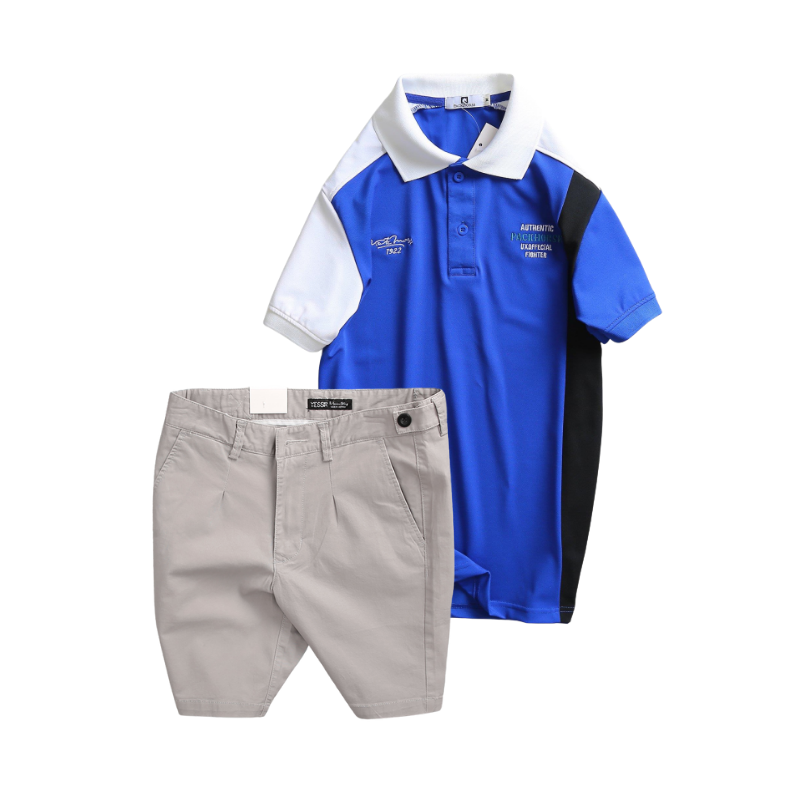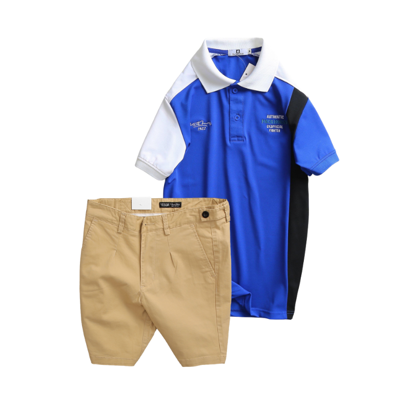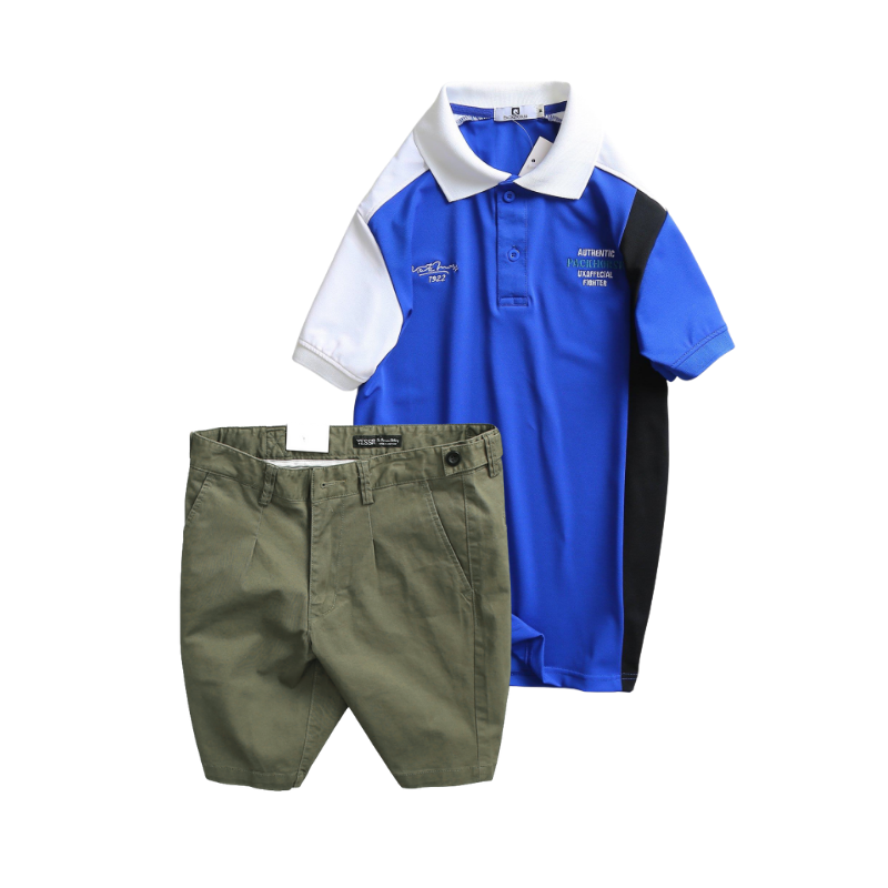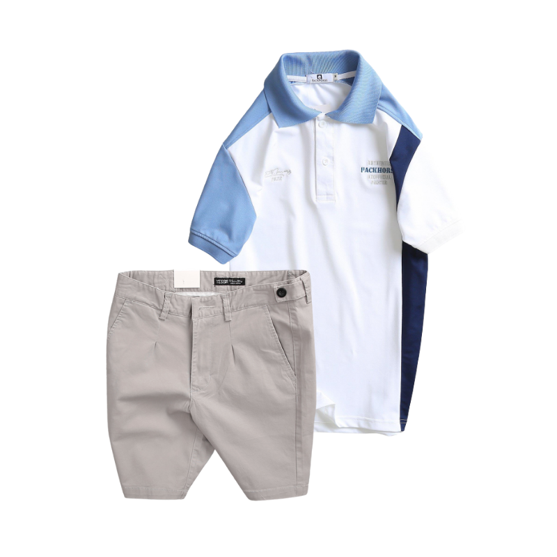 Set Bộ Nam – Áo Thun Nam Polo Cổ Bẻ Cá Sấu Poly Cổ Bẻ Ghép Vải Thêu Chữ Trước Ngực Và Quần Short Kaki Co Giãn Phối Nút Cao Cấp (Có Size 36)