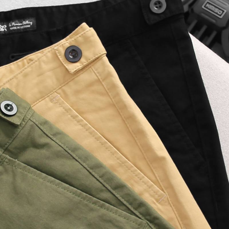 - Quần: Kaki dày dặn, có độ co giãn tốt, không ra màu – đảm bảo form đứng, mặc mát và bền đẹp qua nhiều lần giặt.