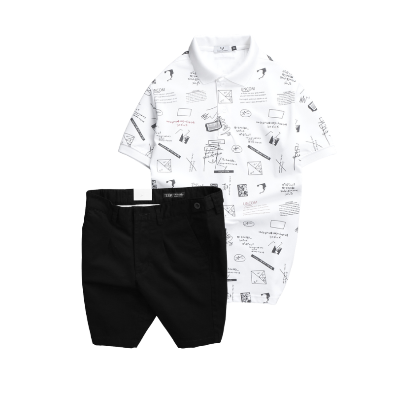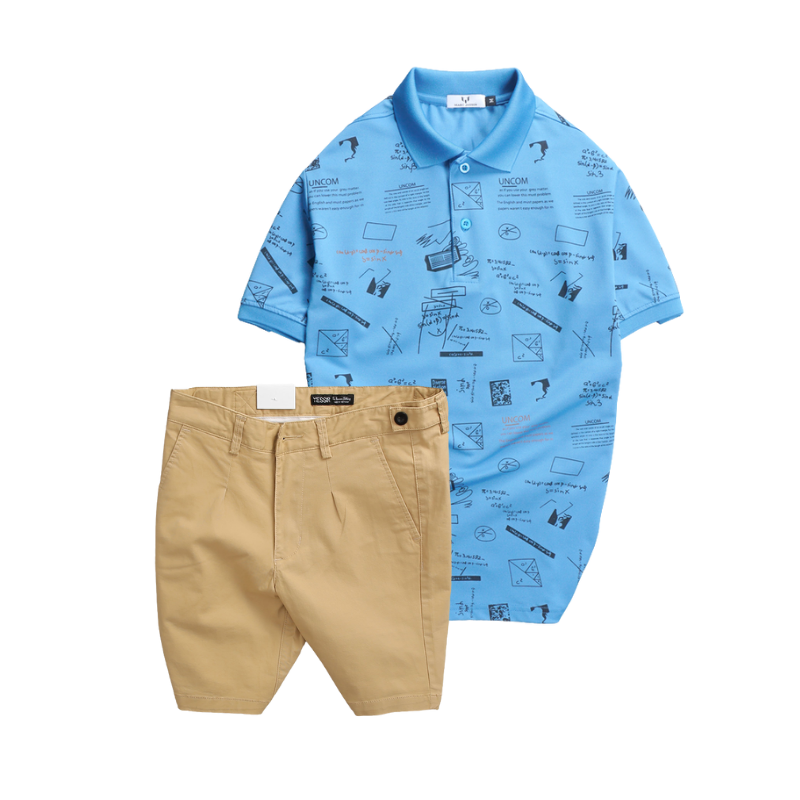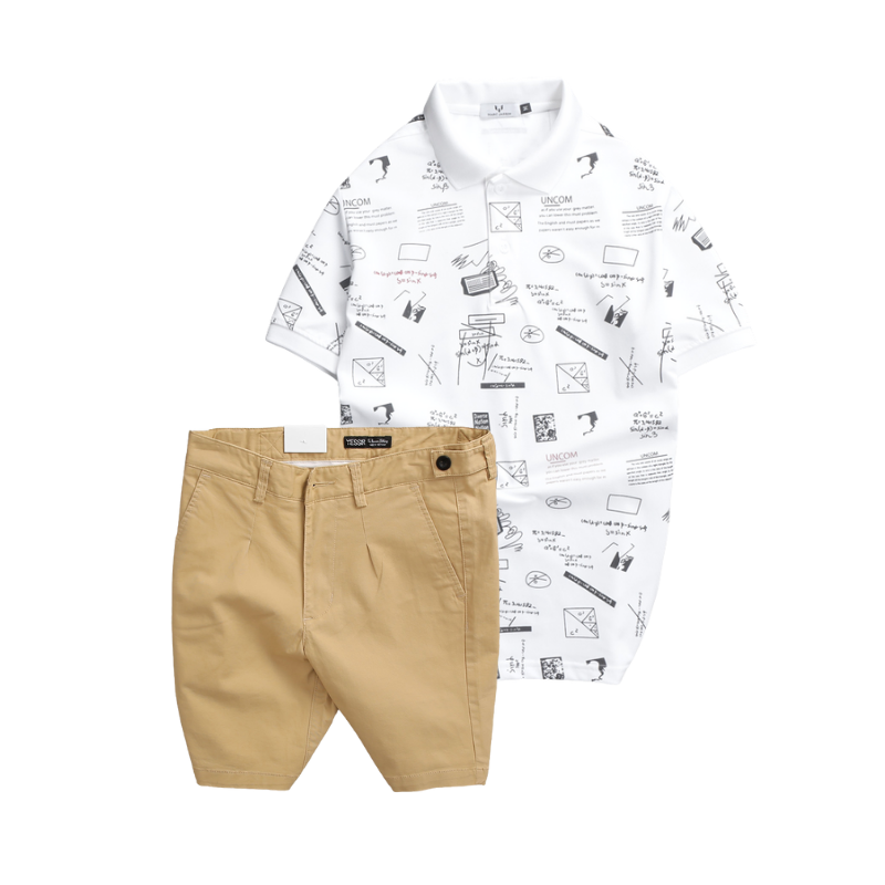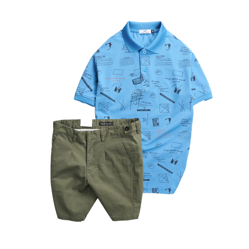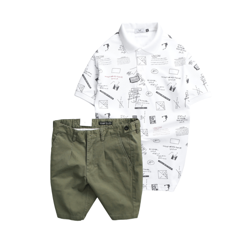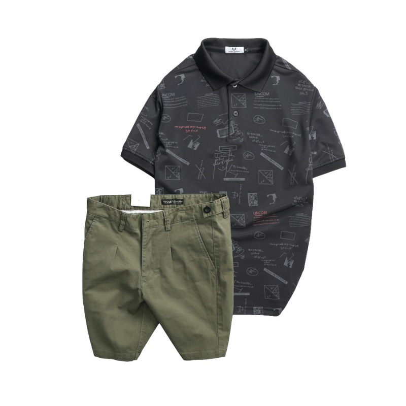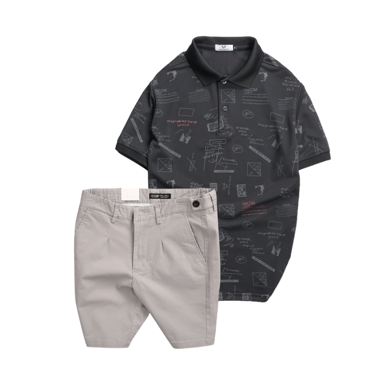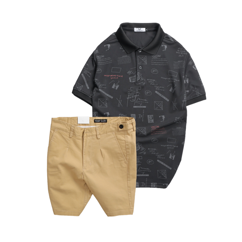 Set Bộ Nam – Áo Thun Nam Polo Cổ Bẻ In Hình Họa Tiết Bền Đẹp Và Quần Short Kaki Co Giãn Phối Nút Cao Cấp (Có Size 36)