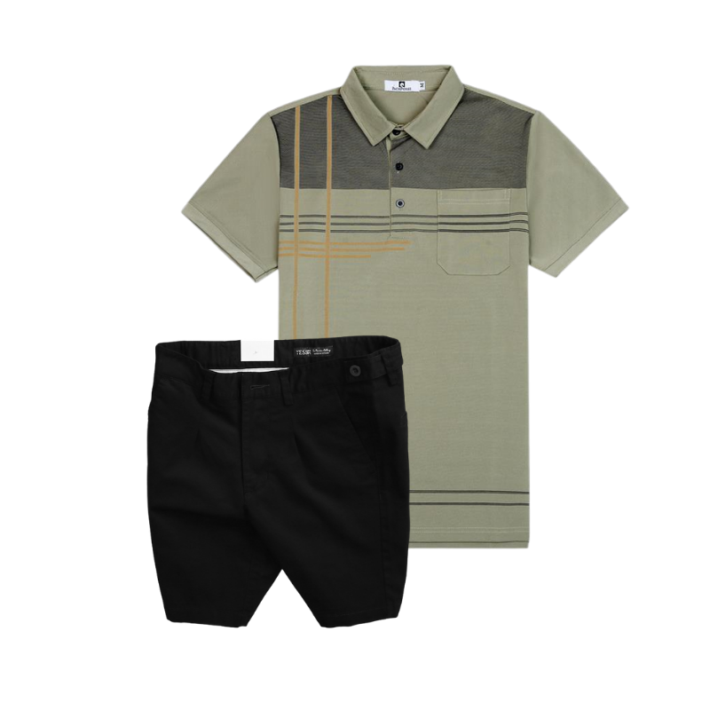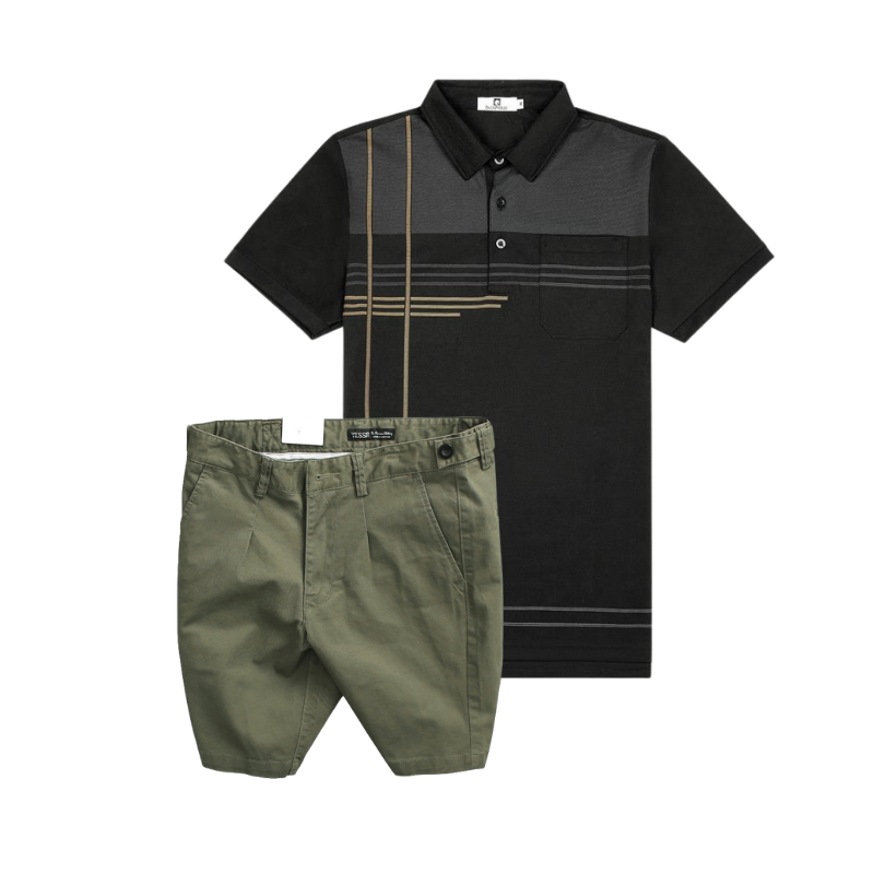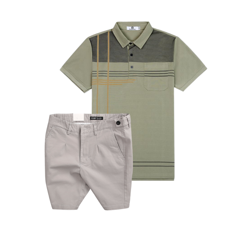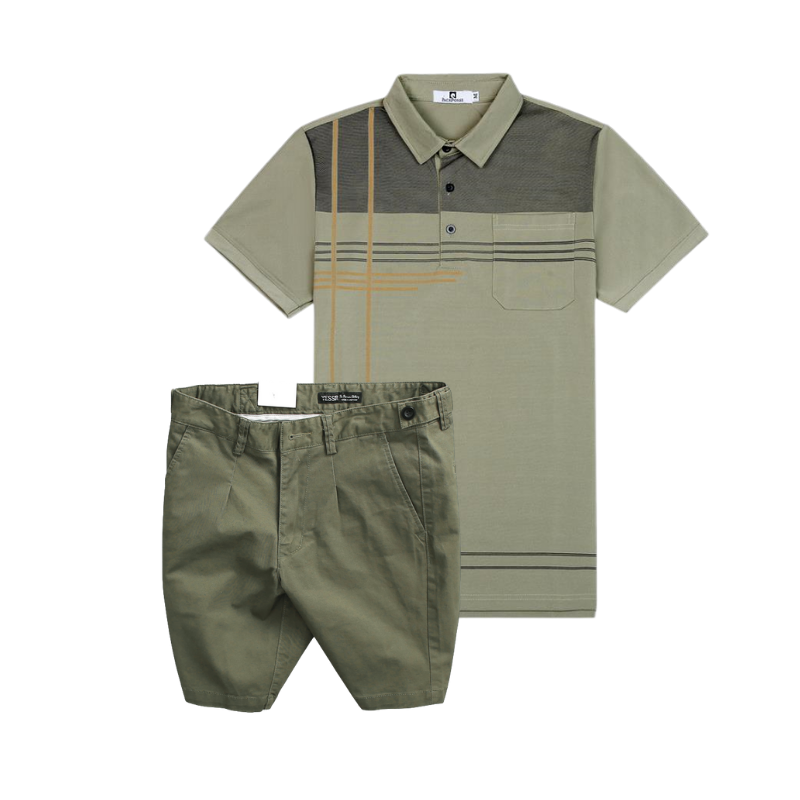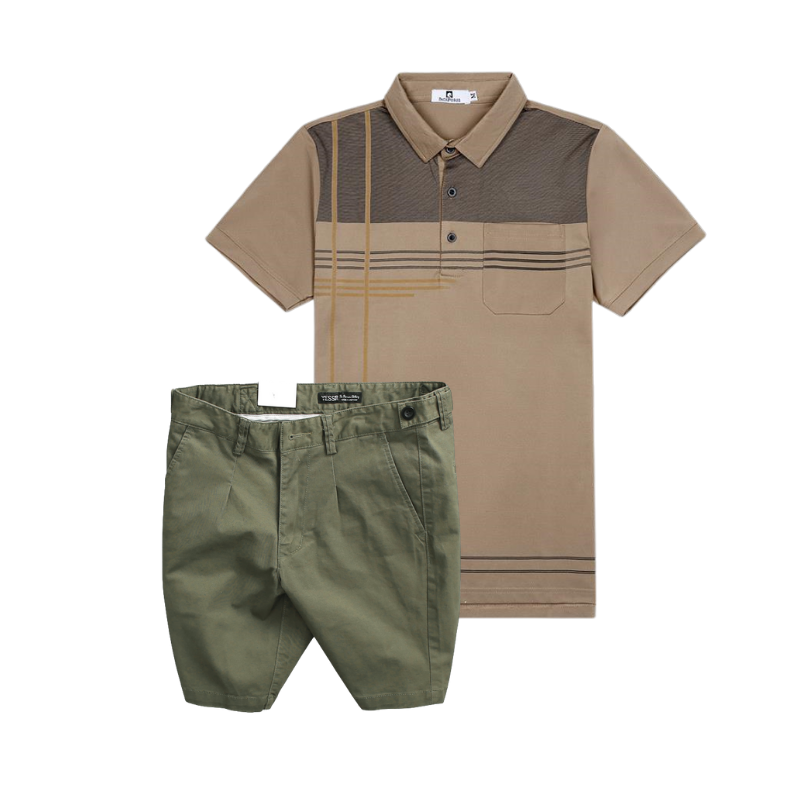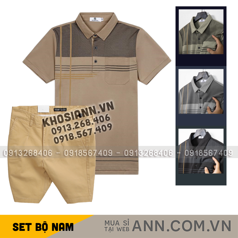 Set Bộ Nam – Áo Thun Nam Polo Cổ Bẻ Sọc Nhuyễn Phối Túi Và Quần Short Kaki Co Giãn Phối Nút Cao Cấp (Có Size 36)