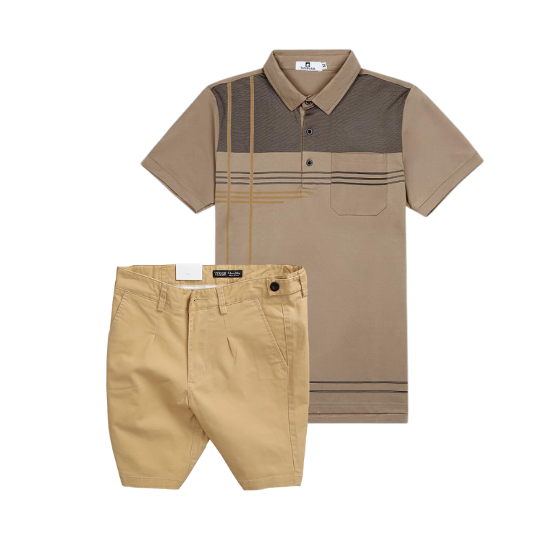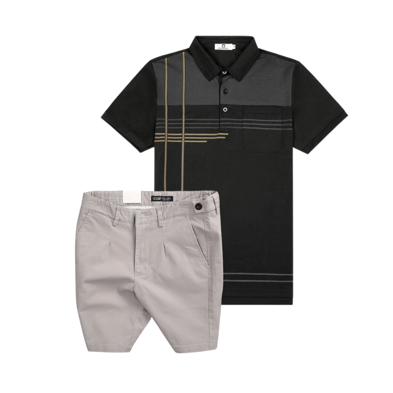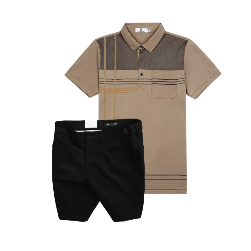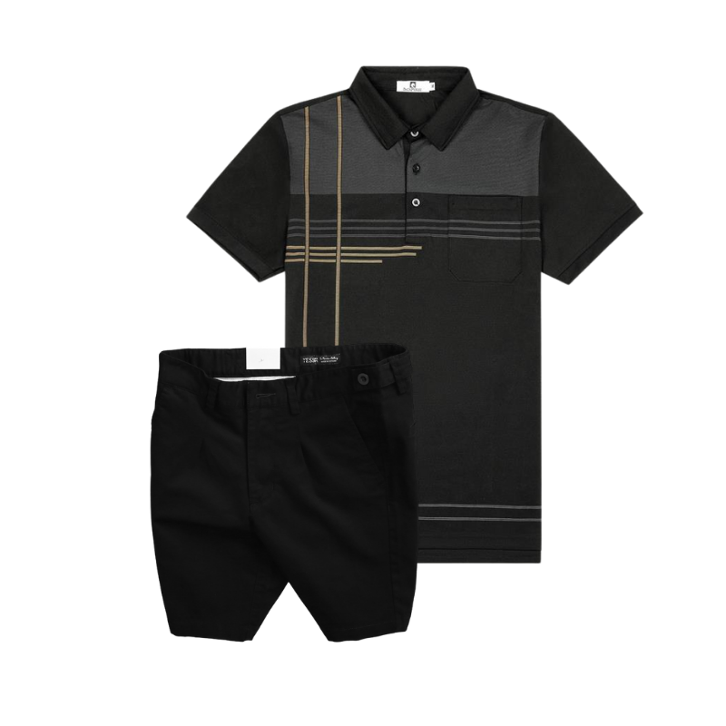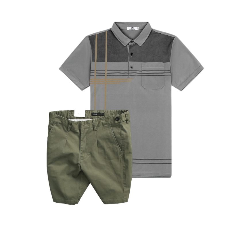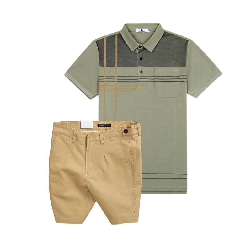 Set Bộ Nam – Áo Thun Nam Polo Cổ Bẻ Sọc Nhuyễn Phối Túi Và Quần Short Kaki Co Giãn Phối Nút Cao Cấp (Có Size 36)