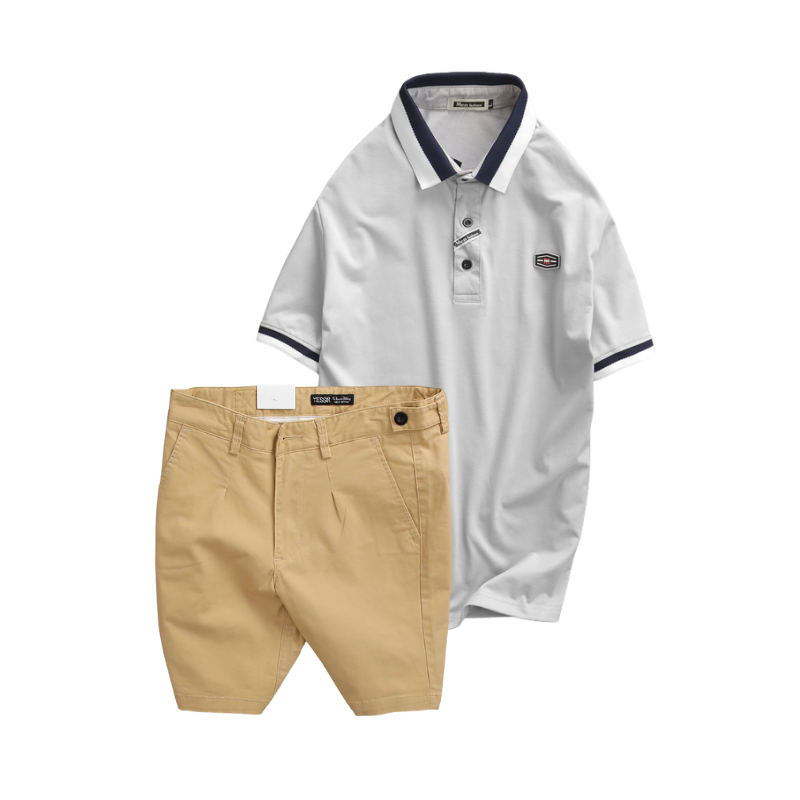 Set Bộ Nam – Áo Thun Nam Polo Cổ Bẻ Tay Ngắn Viển Bo – Quần Short Kaki Co Giãn Phối Nút Cao Cấp (Có Size 36)