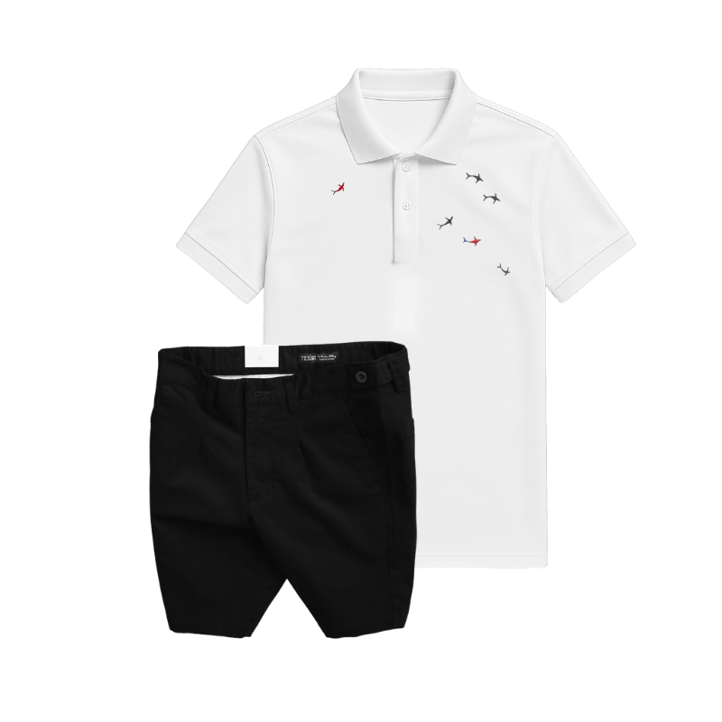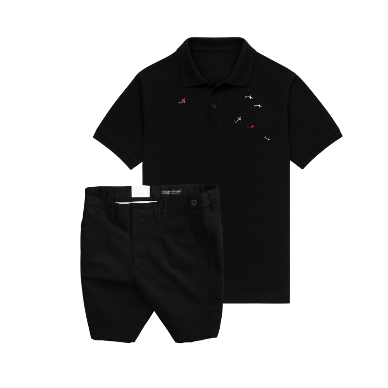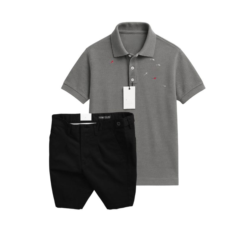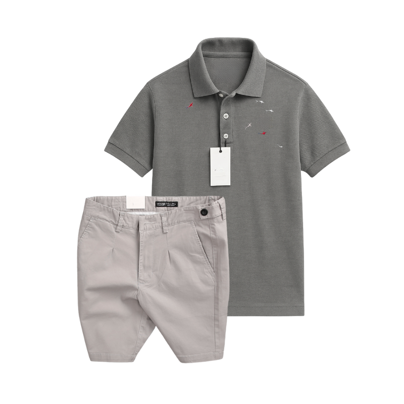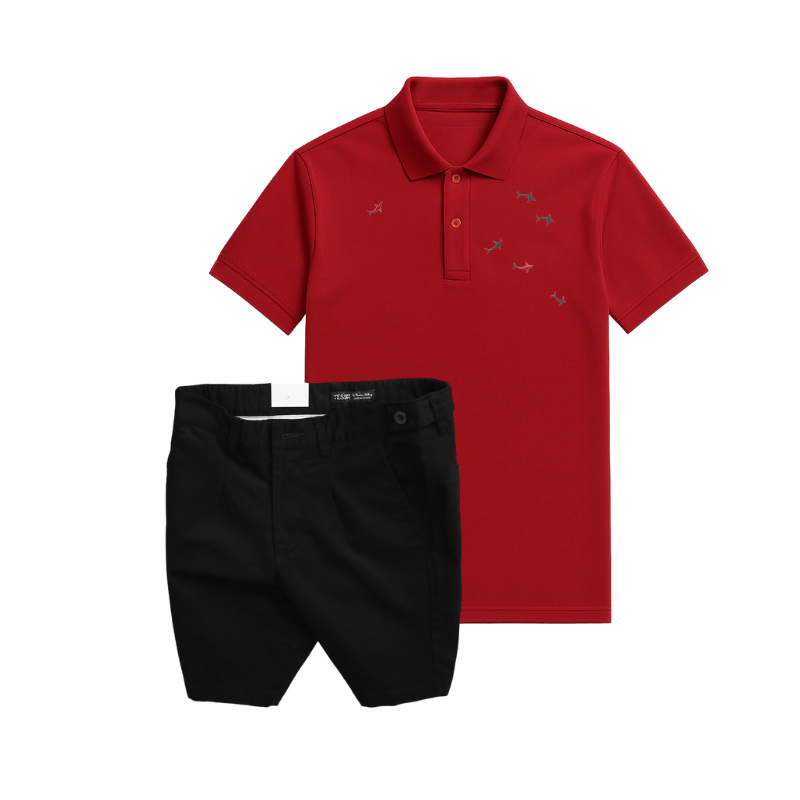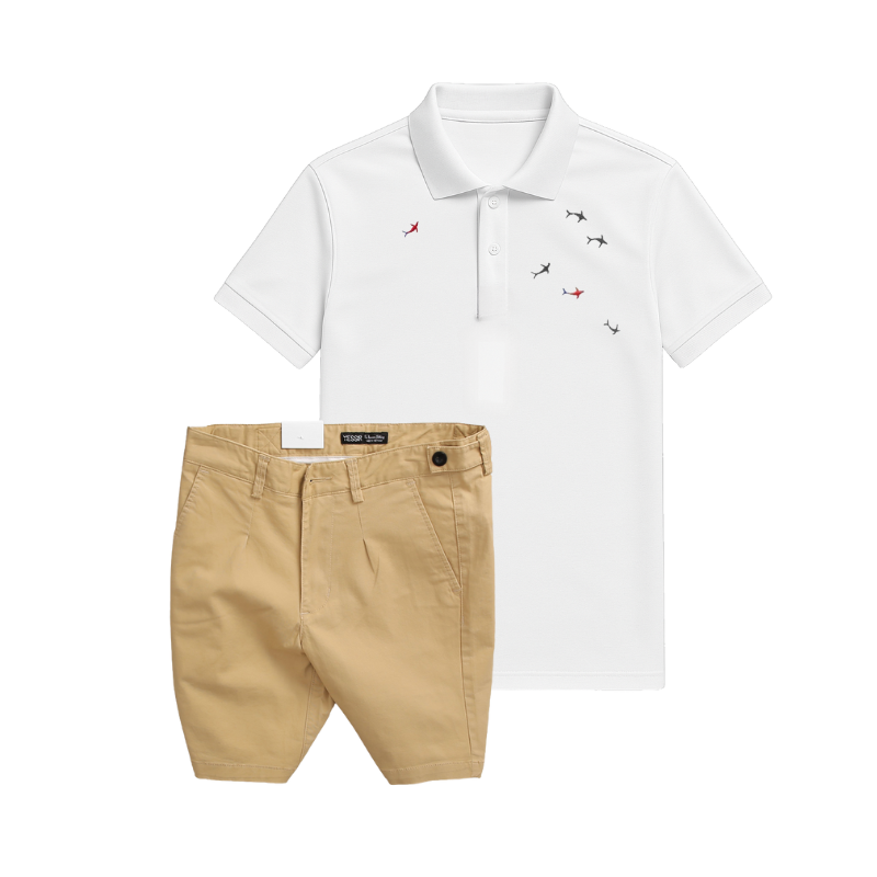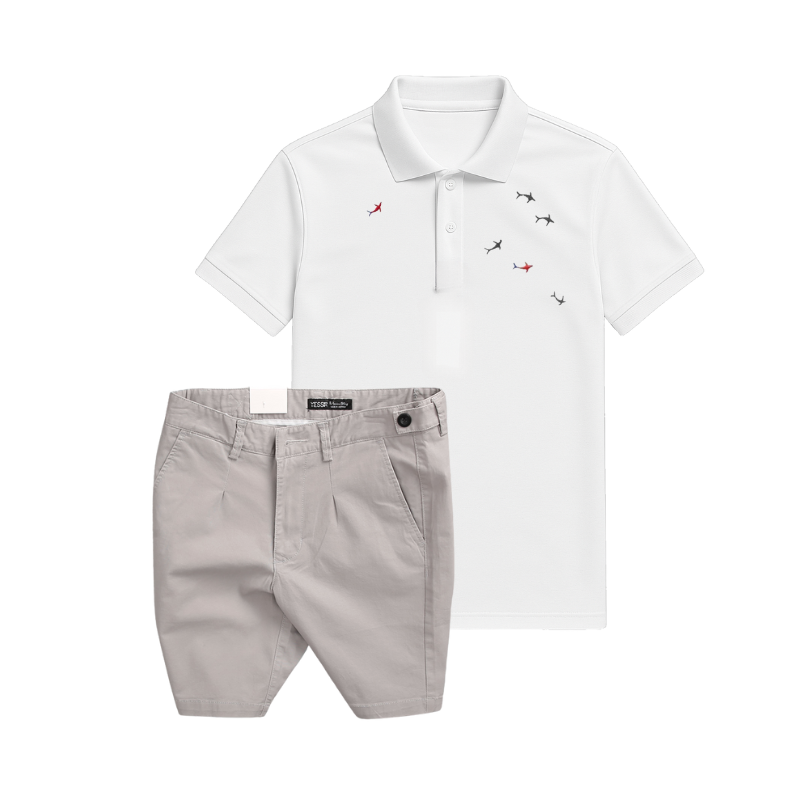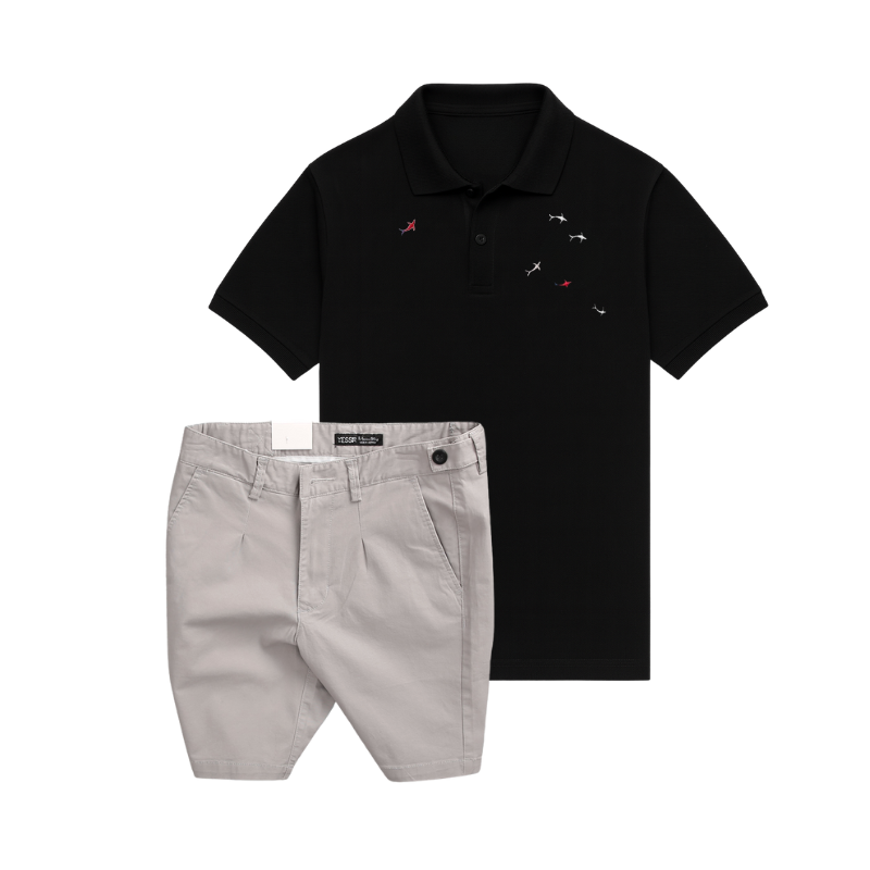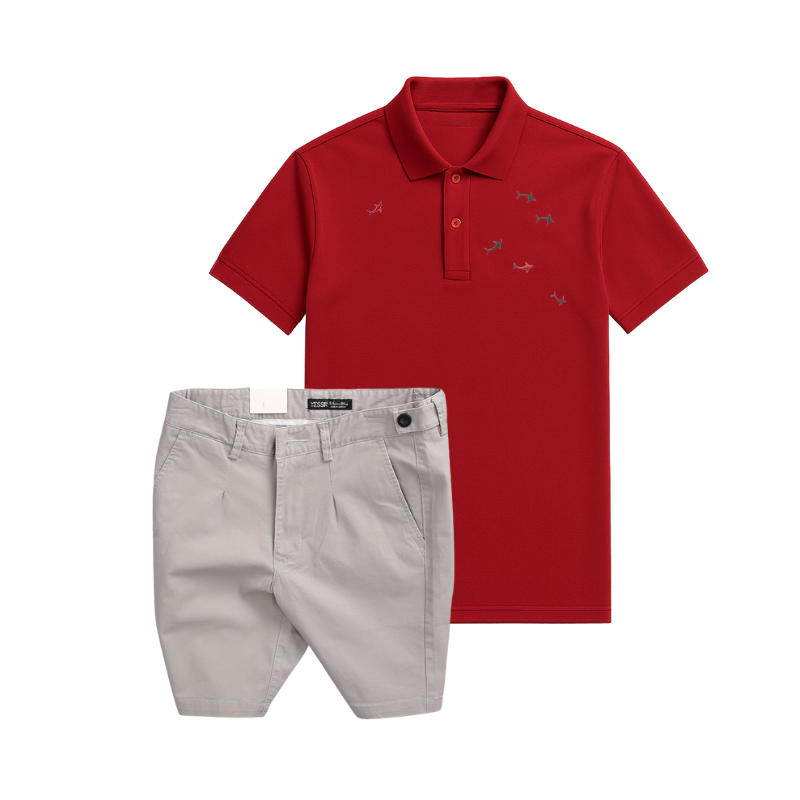 Set Bộ Nam – Áo Thun Nam Polo Cổ Bẻ Thêu Cá Mập Trước Ngực Và Quần Short Kaki Co Giãn Phối Nút Cao Cấp (Có Size 36)