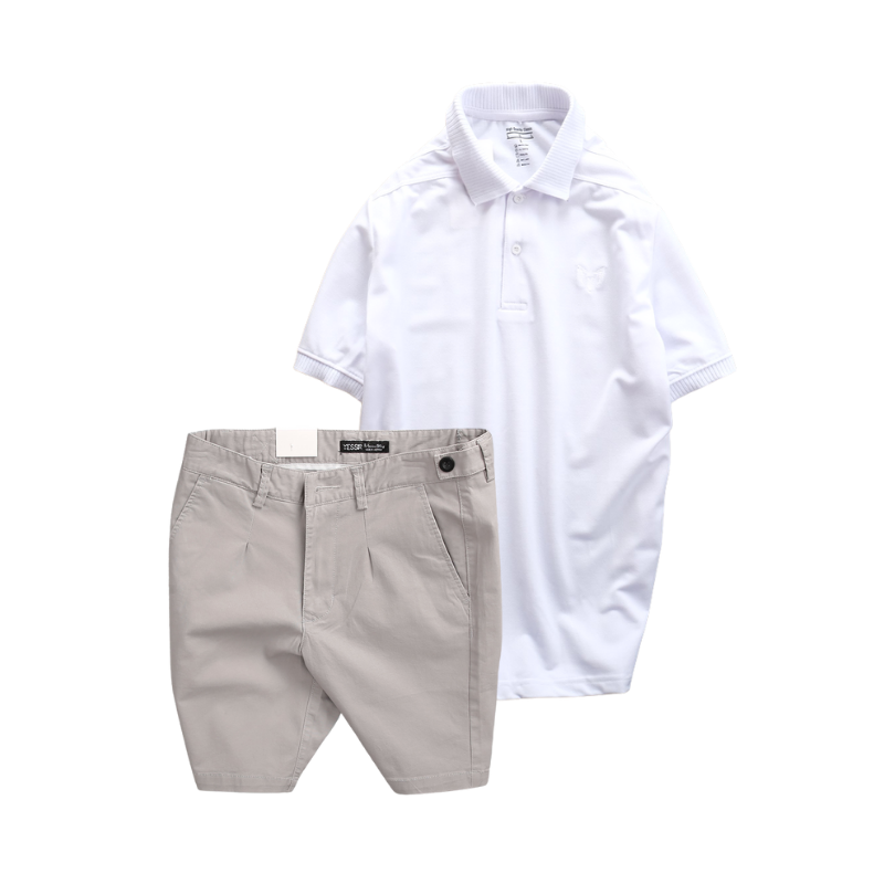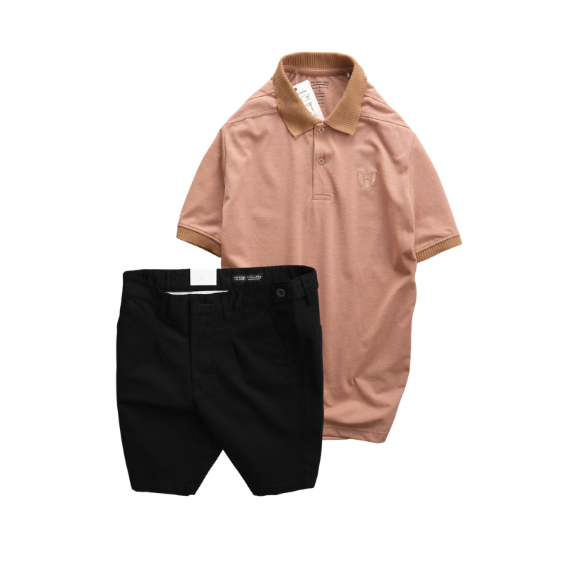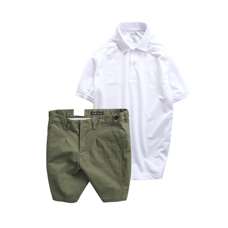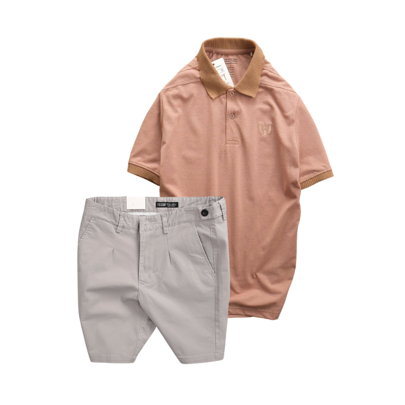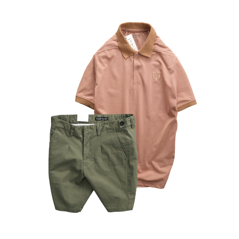 Set Bộ Nam – Áo Thun Nam Polo Cổ Bẻ Thêu Logo Trước Ngực Và Quần Short Kaki Co Giãn Phối Nút Cao Cấp (Có Size 36)