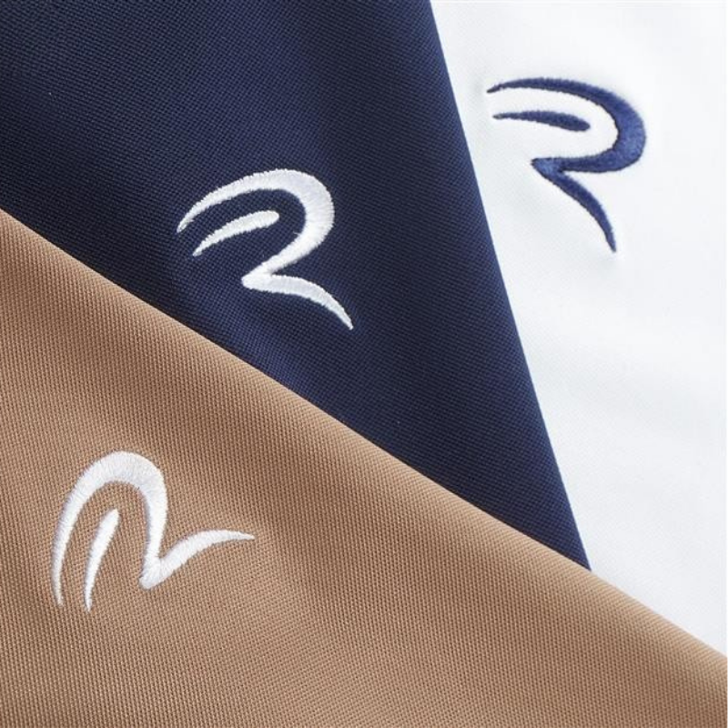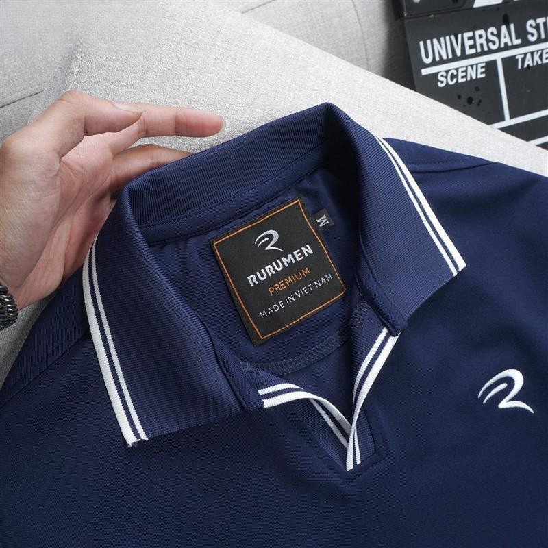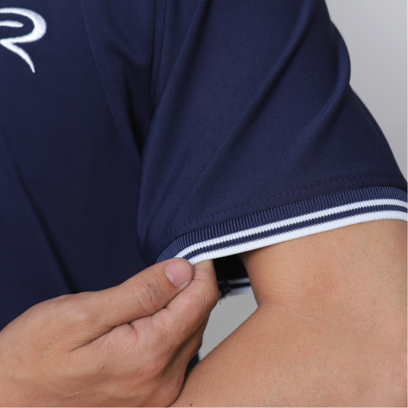 - Thiết kế áo cổ bẻ phối sọc và thêu logo trước ngực