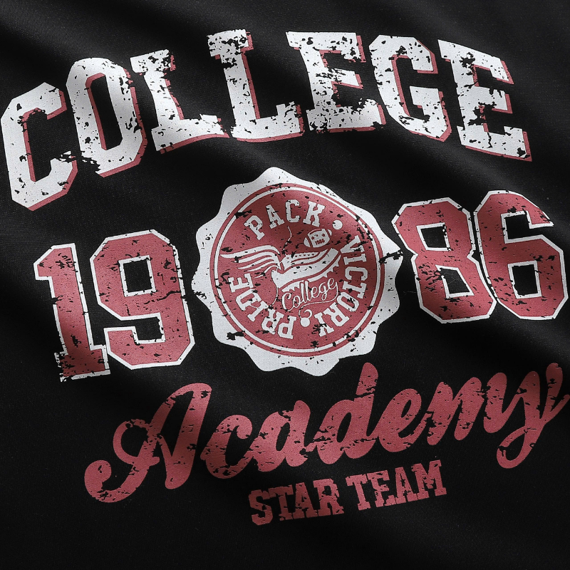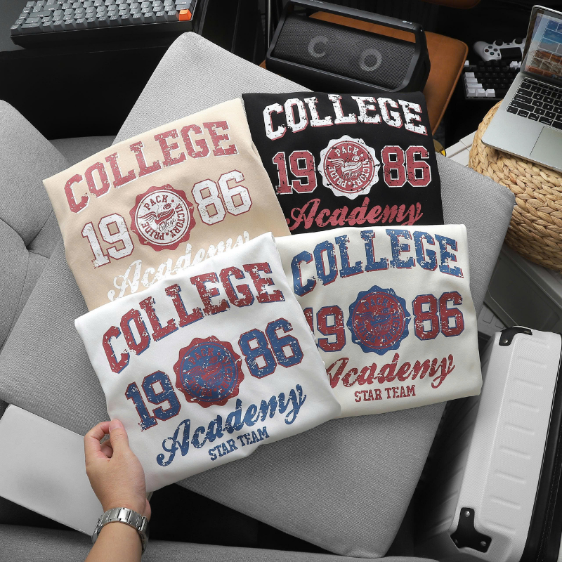 Thiết kế: Họa tiết in chữ College 1986 trước ngực tạo điểm nhấn mang đậm tinh thần thể thao học đường, trẻ trung và không bao giờ lỗi mốt.