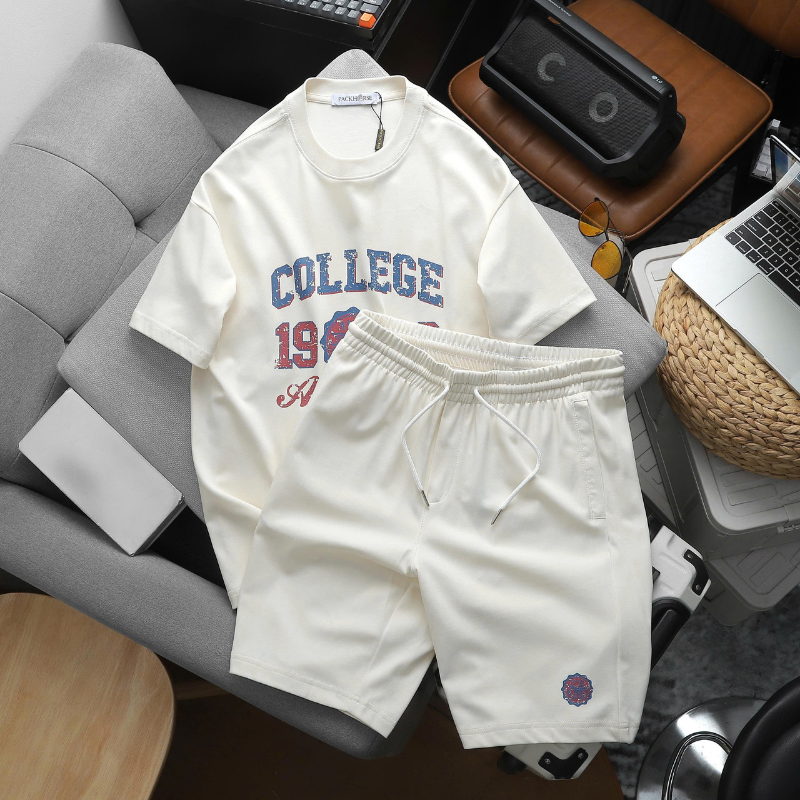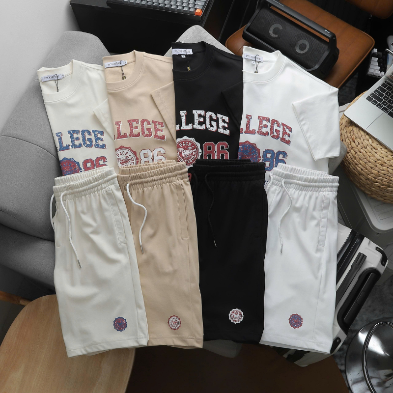 Set Bộ Nam – Quần Short Thun Nam Và Áo Thun Nam Cổ Tròn In Chữ College 1986 Trước Ngực (Size Từ M Đến XXL)