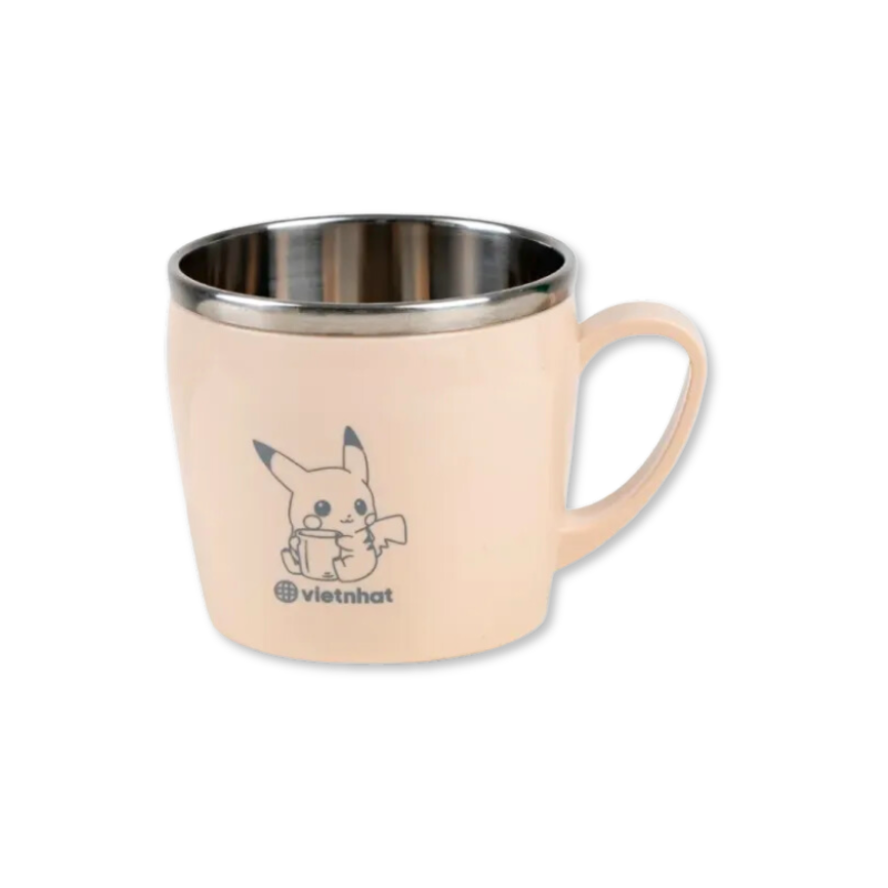 ✨ Cốc inox có quai cầm ruột inox vỏ ngoài bằng nhựa rất phù hợp cho trẻ nhỏ.