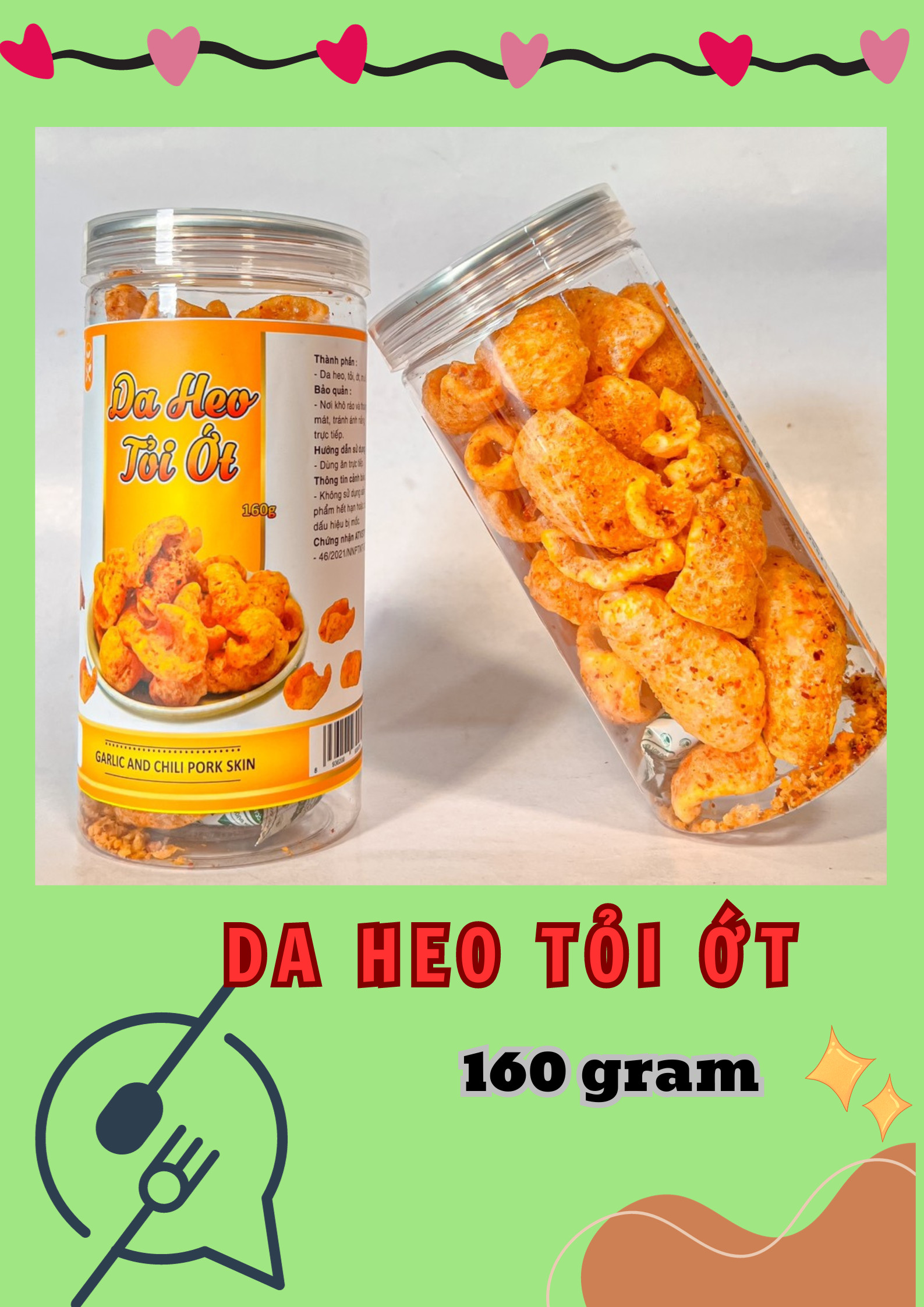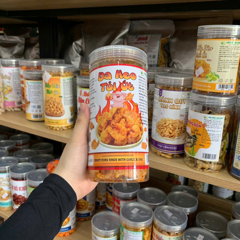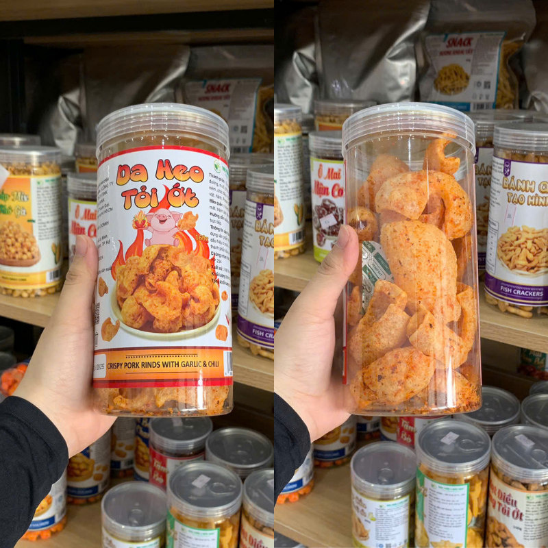Shop sỉ da Heo Tỏi Ớt Thơm Ngon Giòn Rụm 160g Hộp