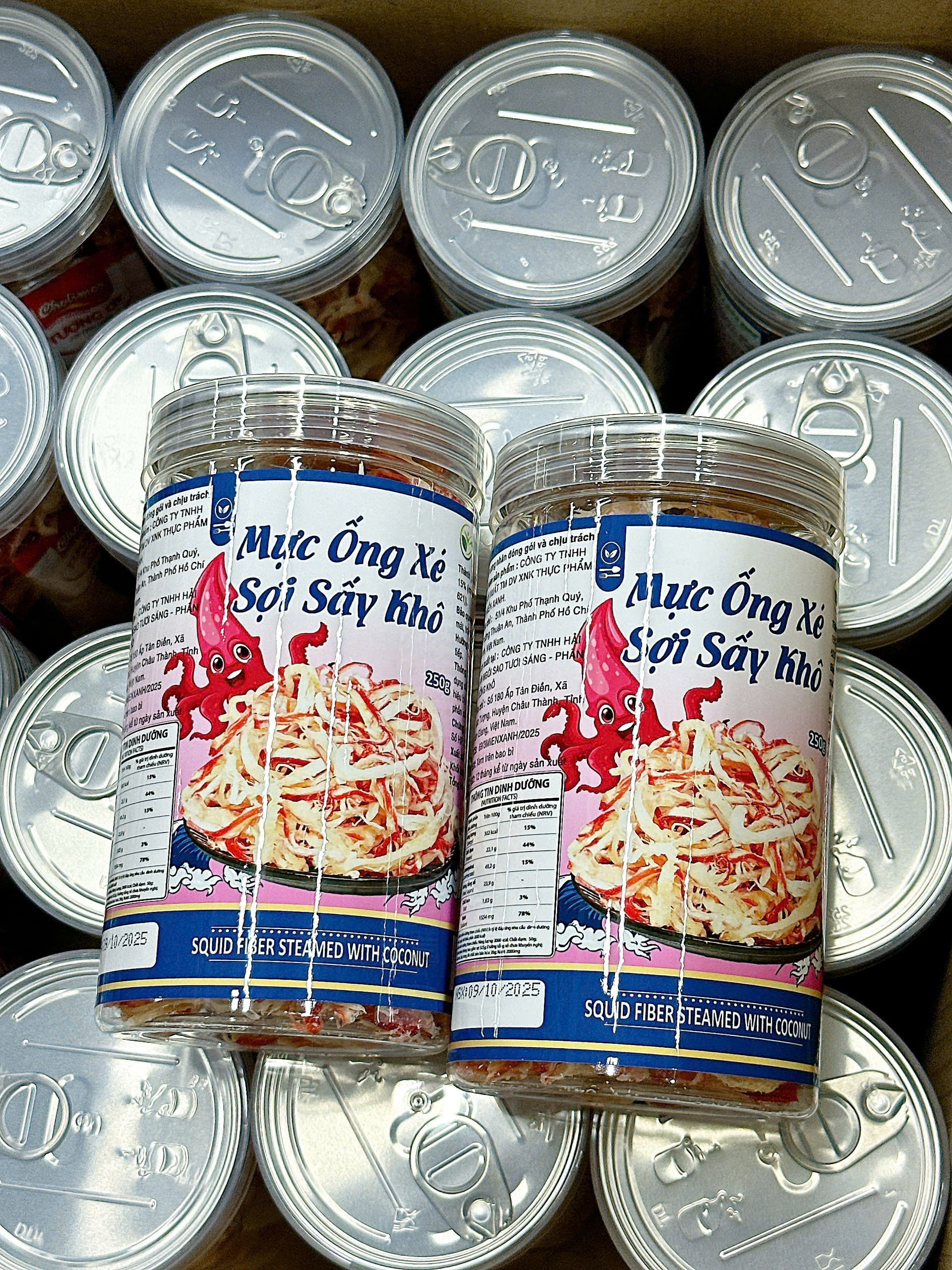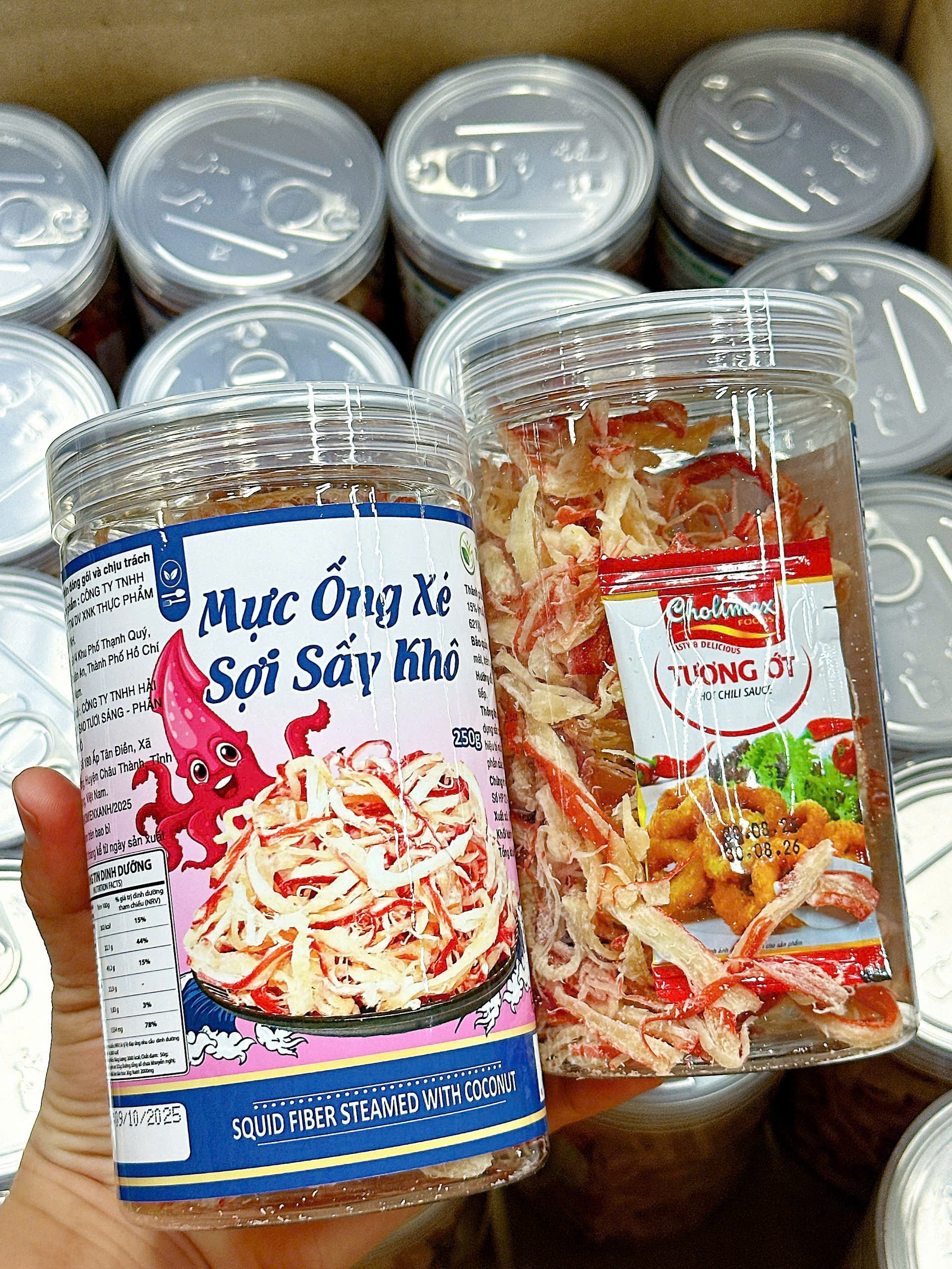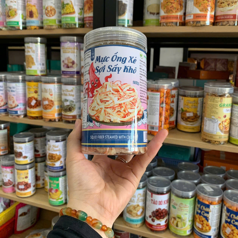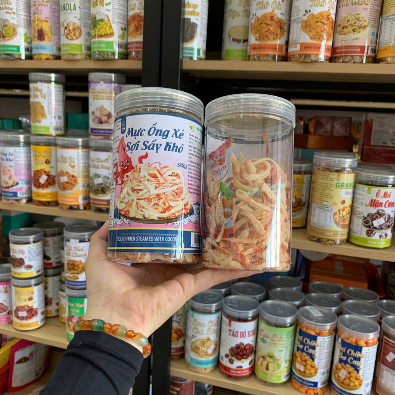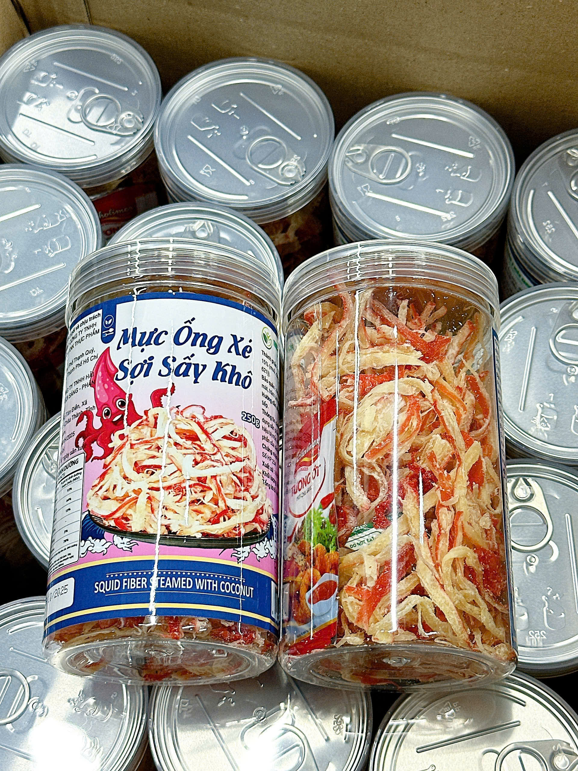 Shop sỉ mực Ống Xé Sợi Sấy Khô – Mực Dừa Xé Sợi Thơm Ngon 250g – Hũ Pet