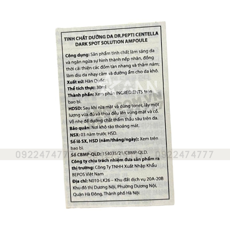Shop sỉ serum Dr.Pepti Hàn Quốc Chiết Xuất Rau Má Centella Dark Spot Solution Ampoule 30ml