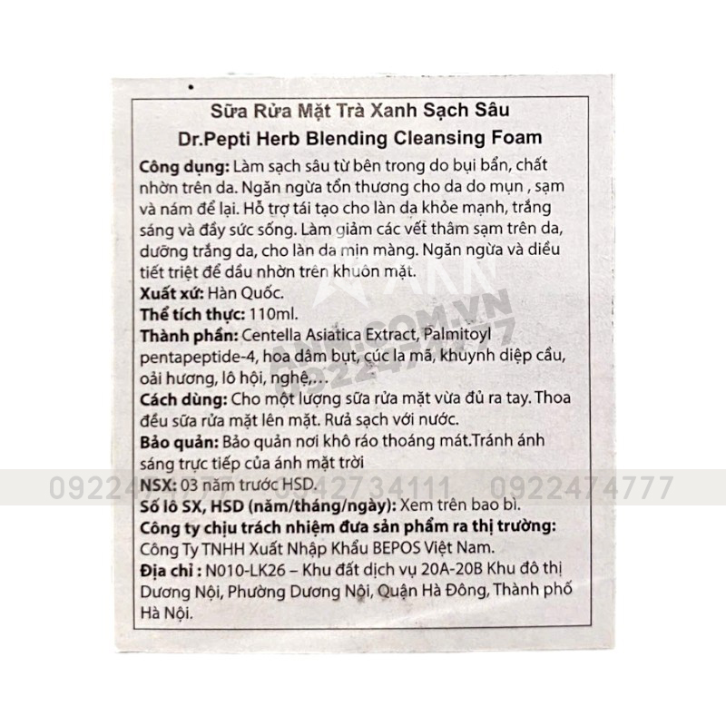 Sữa Rửa Mặt Dr.Pepti Hàn Quốc Herb Blending Chiết Xuất Trà Xanh 110ml phù hợp da dầu mụn, da nhạy cảm