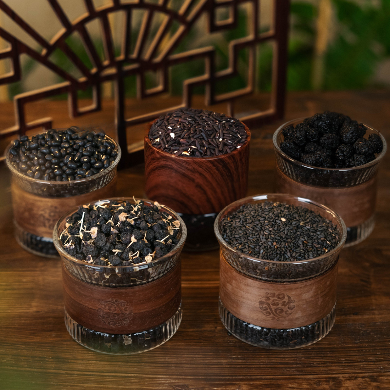 THÀNH PHẦN: Mè đen, dâu tằm, hắc kỷ tử, đỗ đen, gạo nếp